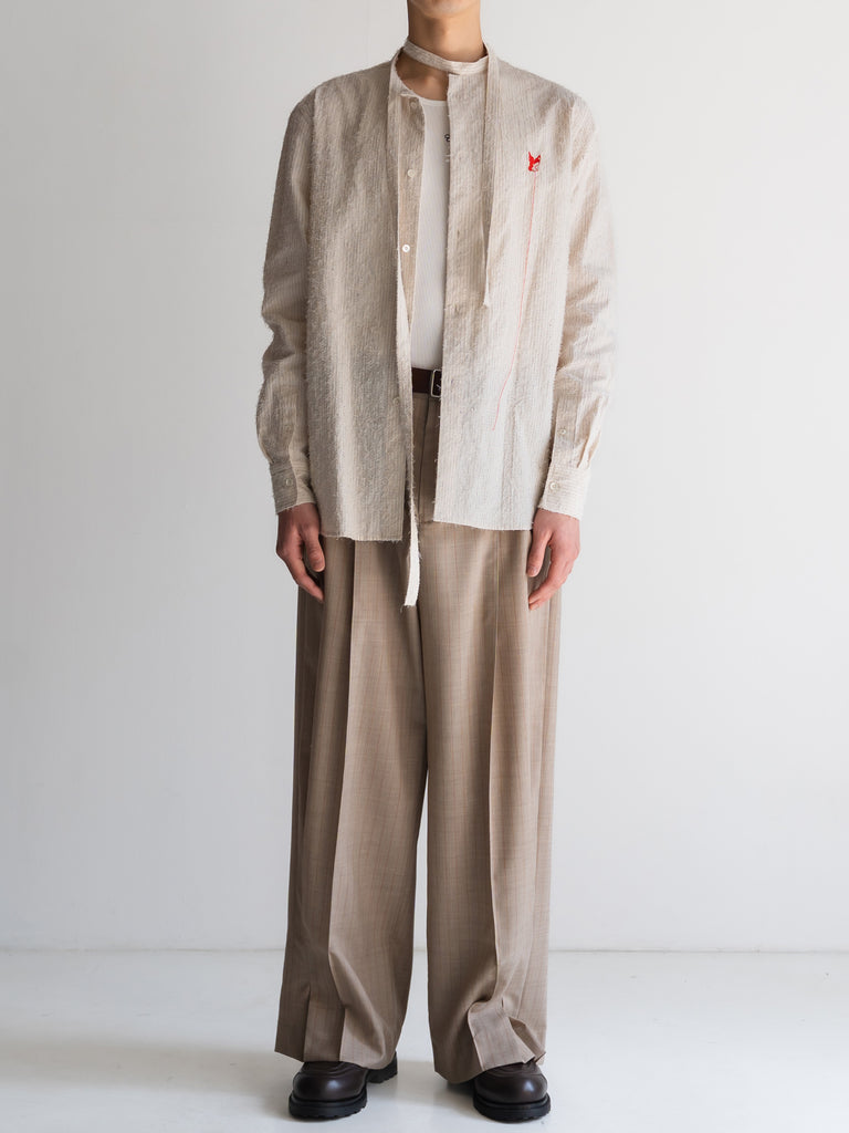 程よく短めの着丈はタックインした際に生地が溜まらないよう計算されている。