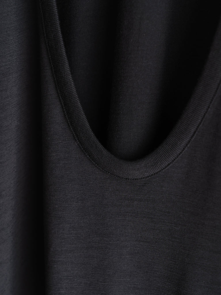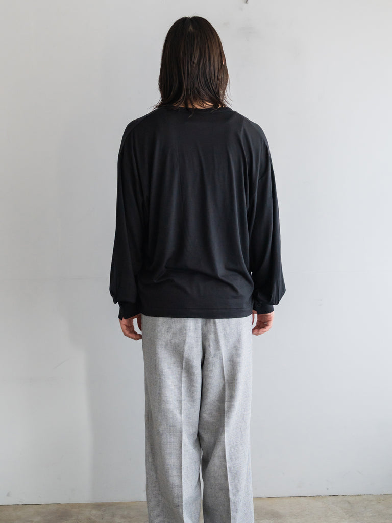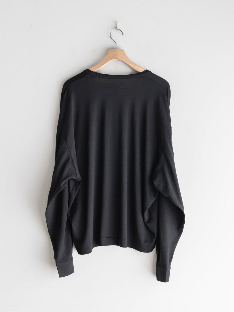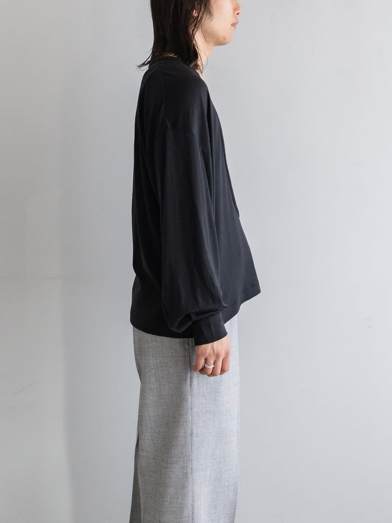ウールの黒は、それだけで上品な艶を持っていて、カットソーでありながらどこか格調を感じさせる。