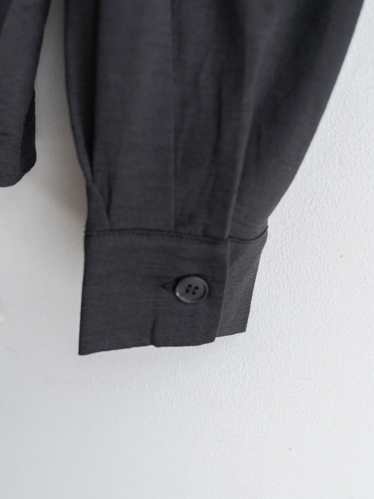 裾まわりに余計な布が溜まらないよう分量を計算し、ブルゾンのように立体的な袖が印象的です。