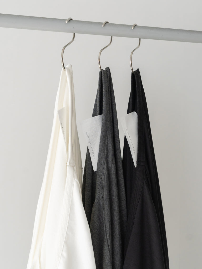 素材は、nonnotteが独自に紡績したsuper120のウォッシャブルウール天竺。