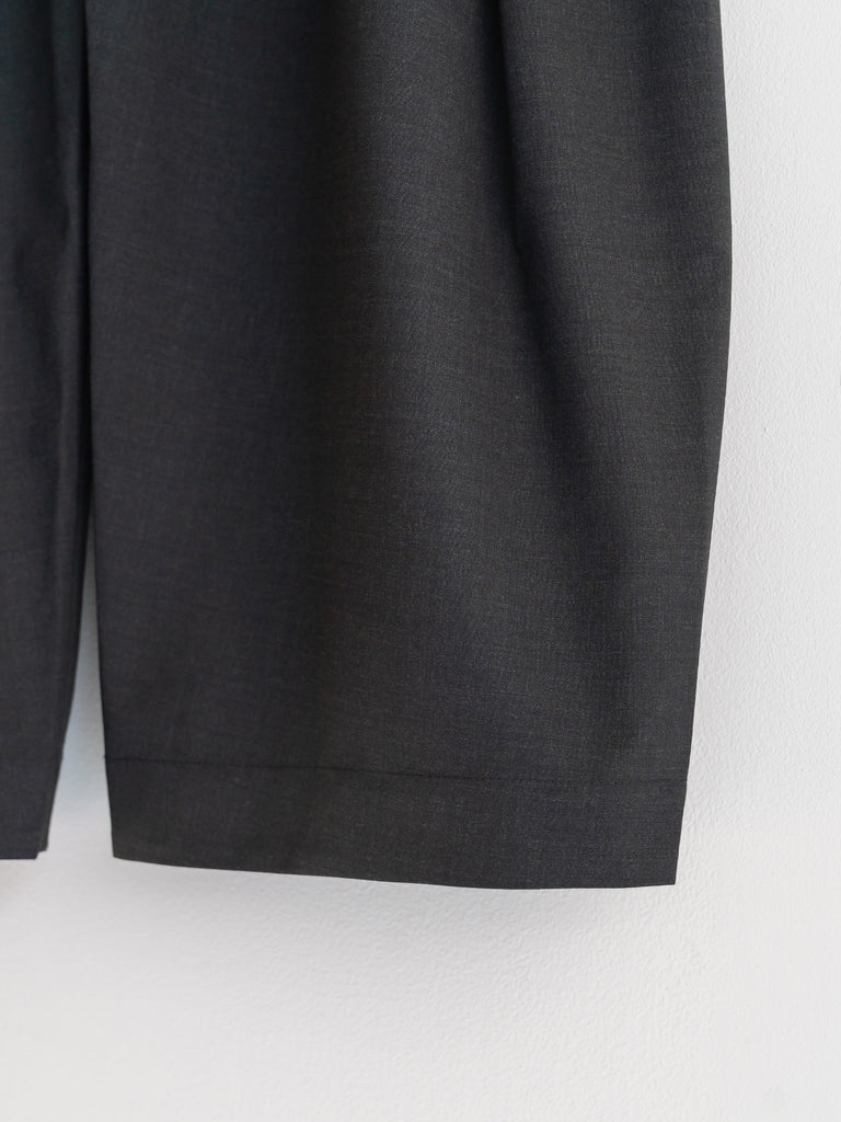 軽量なトロピカルウールブレンド素材を使用した、オーバーサイズシルエットのロングショーツ。