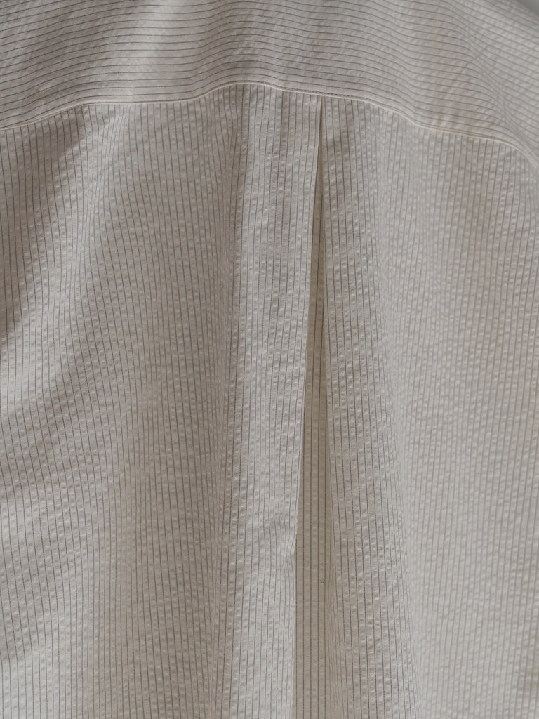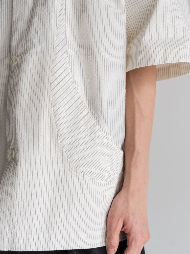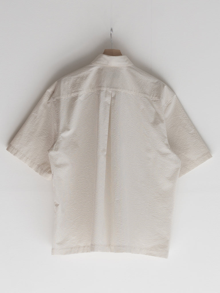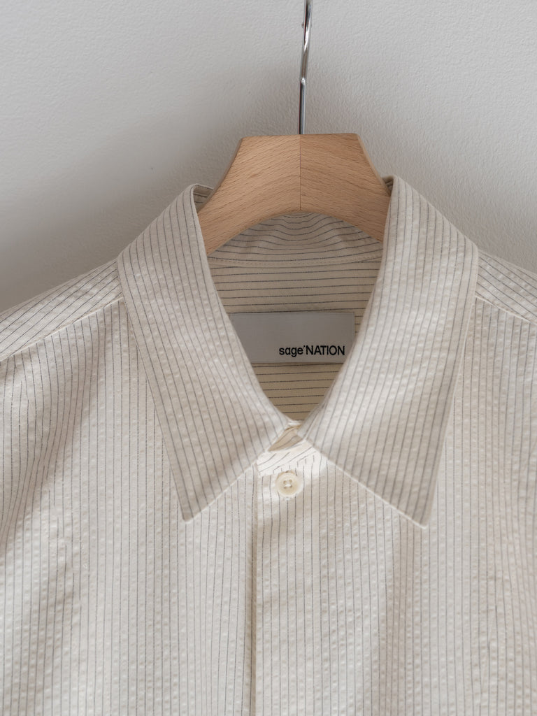 日本製のストライプシアサッカー生地を使用した、リラックス感のあるボクシーフィットのシャツ。