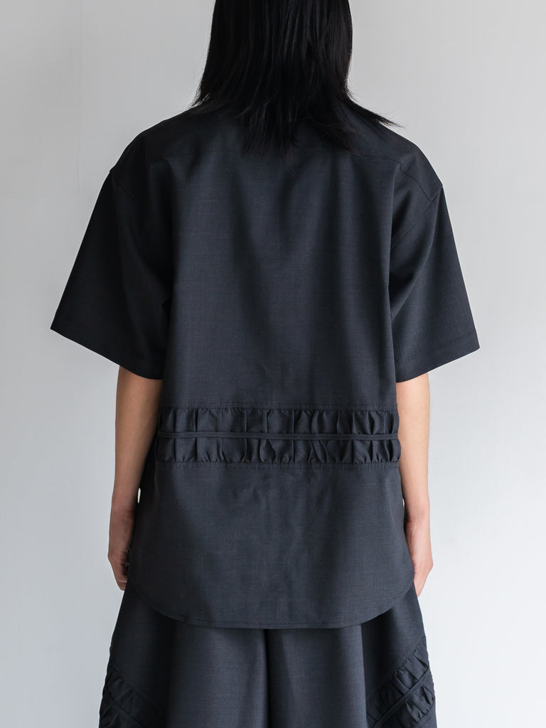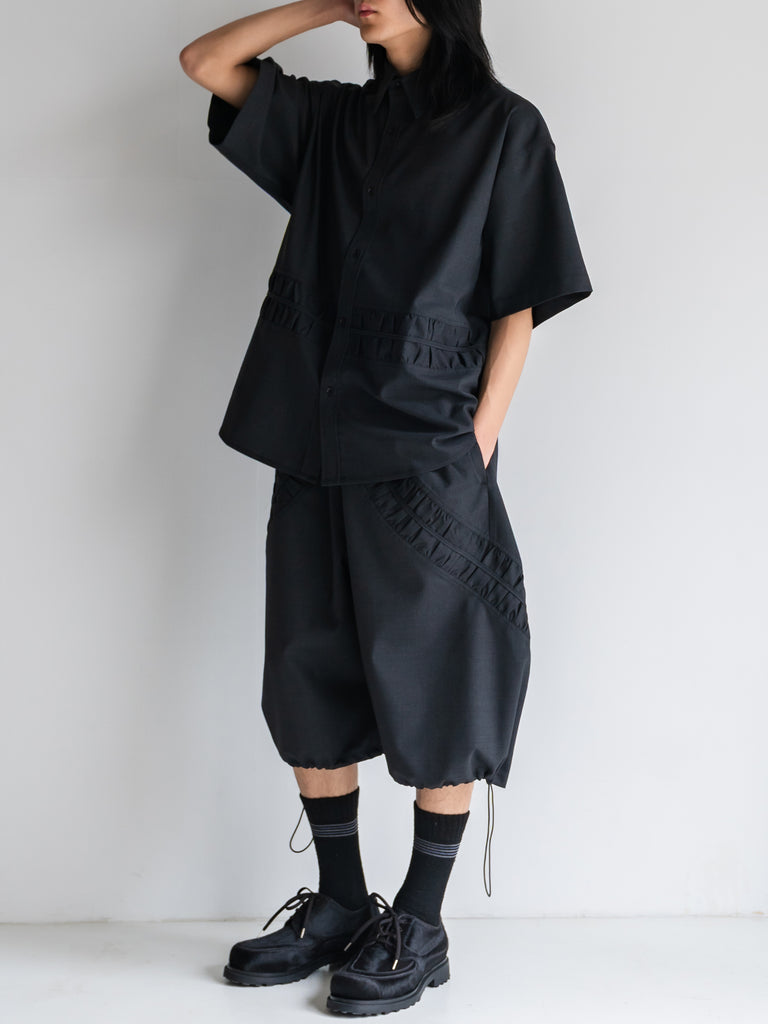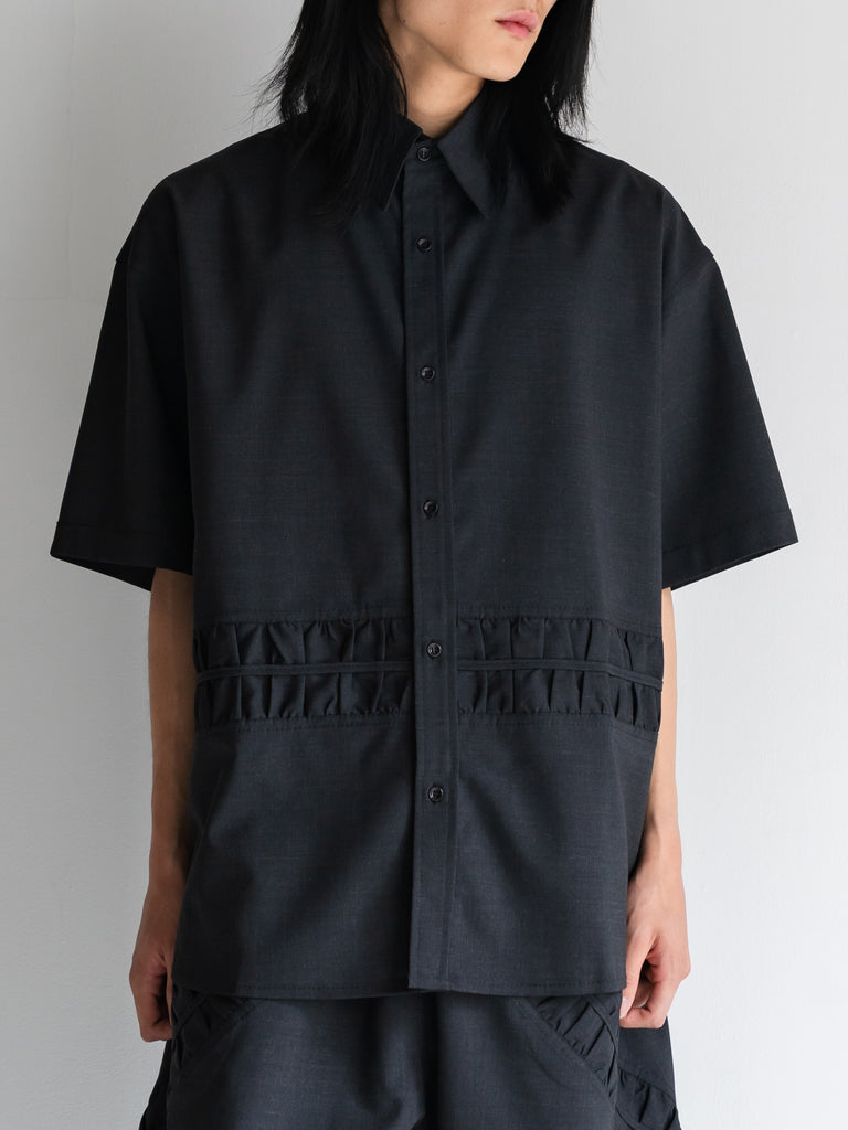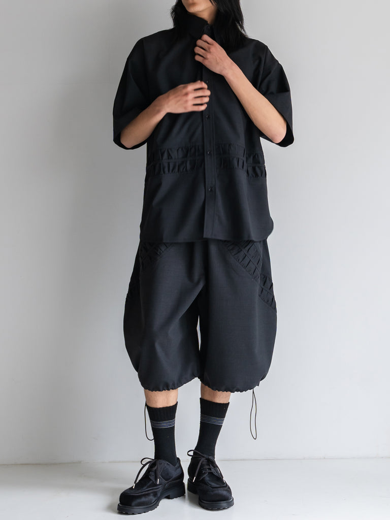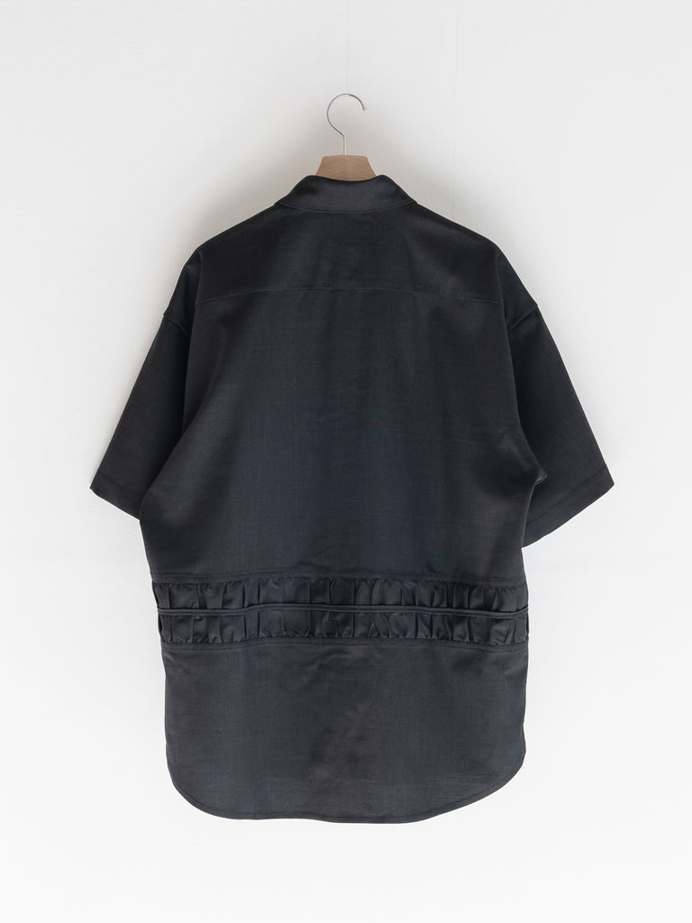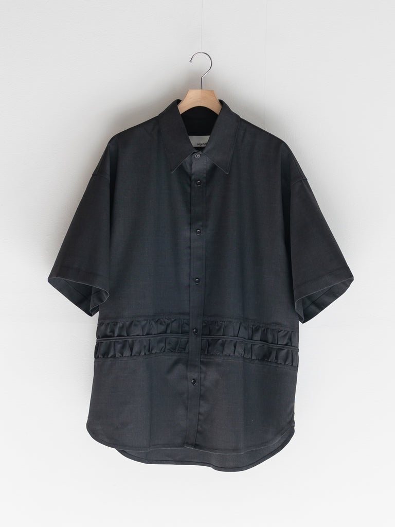 上質なサルトリアルトロピカルウールを使用した、カジュアルな雰囲気の半袖オーバーサイズシャツ。