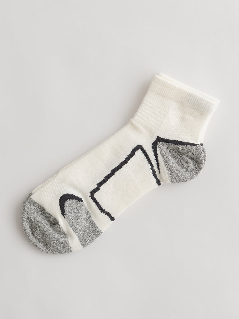 甲部分に入ったゴムが足首を保護するとともに、フィット感を向上させます。