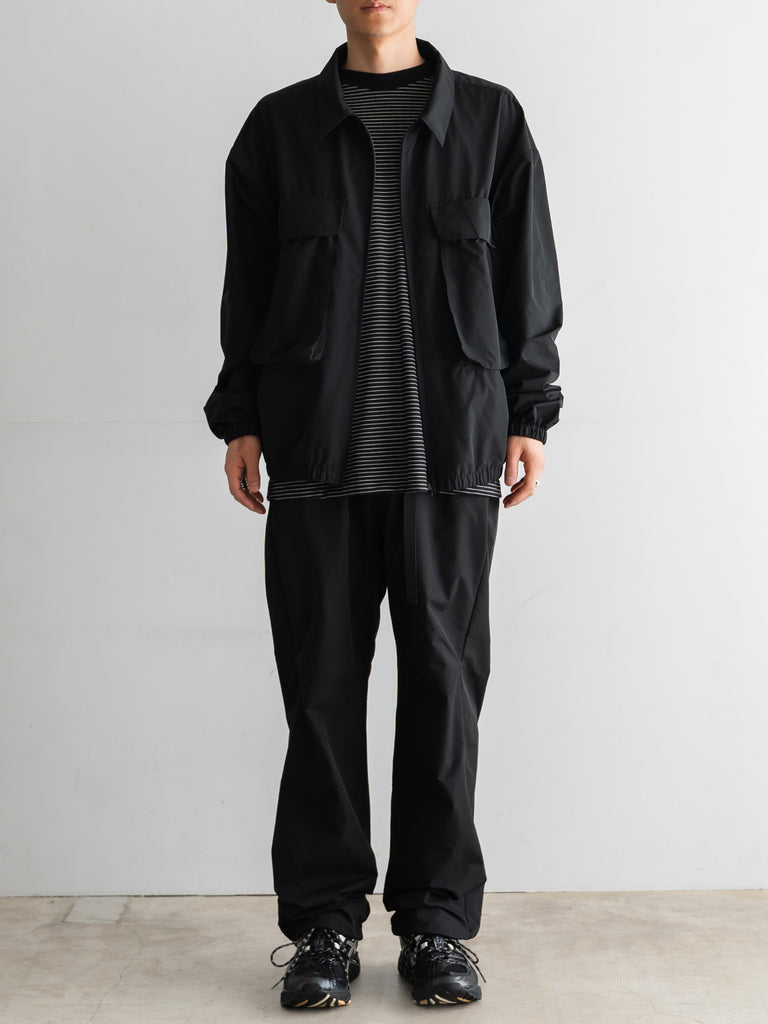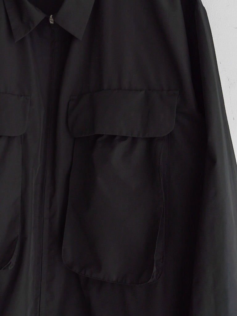 細かい格子状に織り込まれたリップストップポリエステルを使用。耐久性が高く、軽量な上に、撥水、防風に優れています。両胸についたマチ付きポケットが特徴的なデザイン。身幅にゆとりあるボックスシルエット。製品にはウォッシュ加工を施しています。