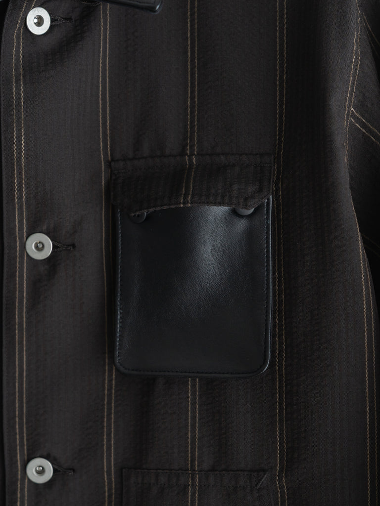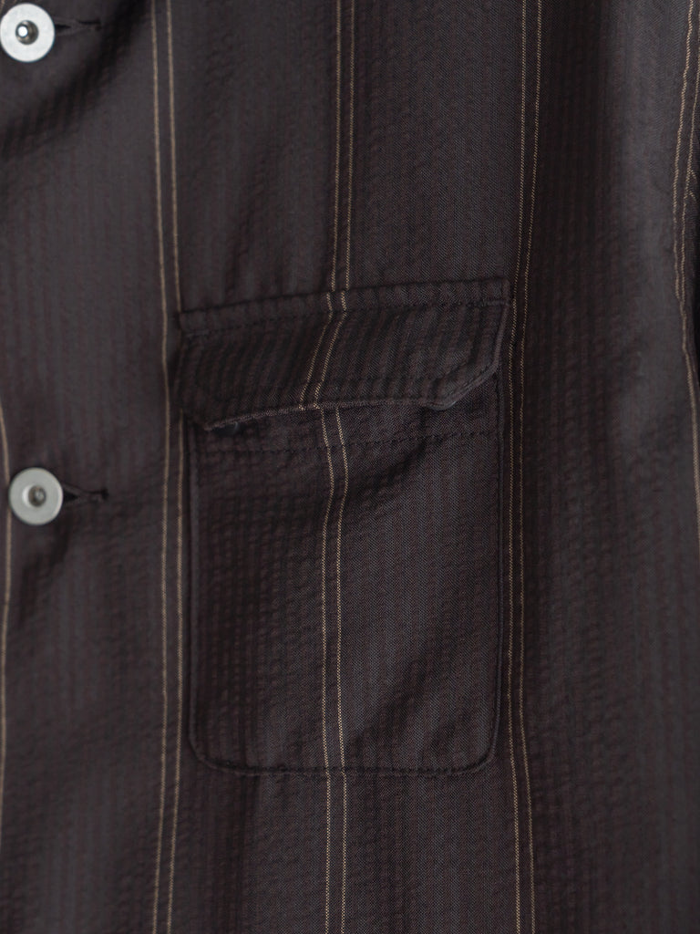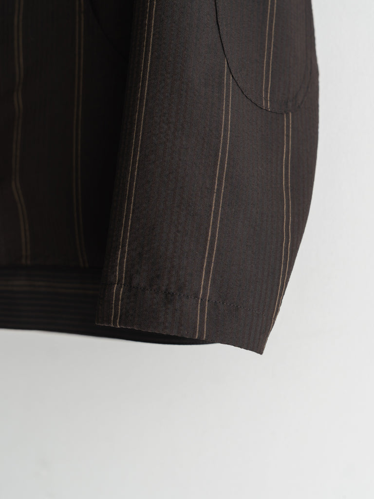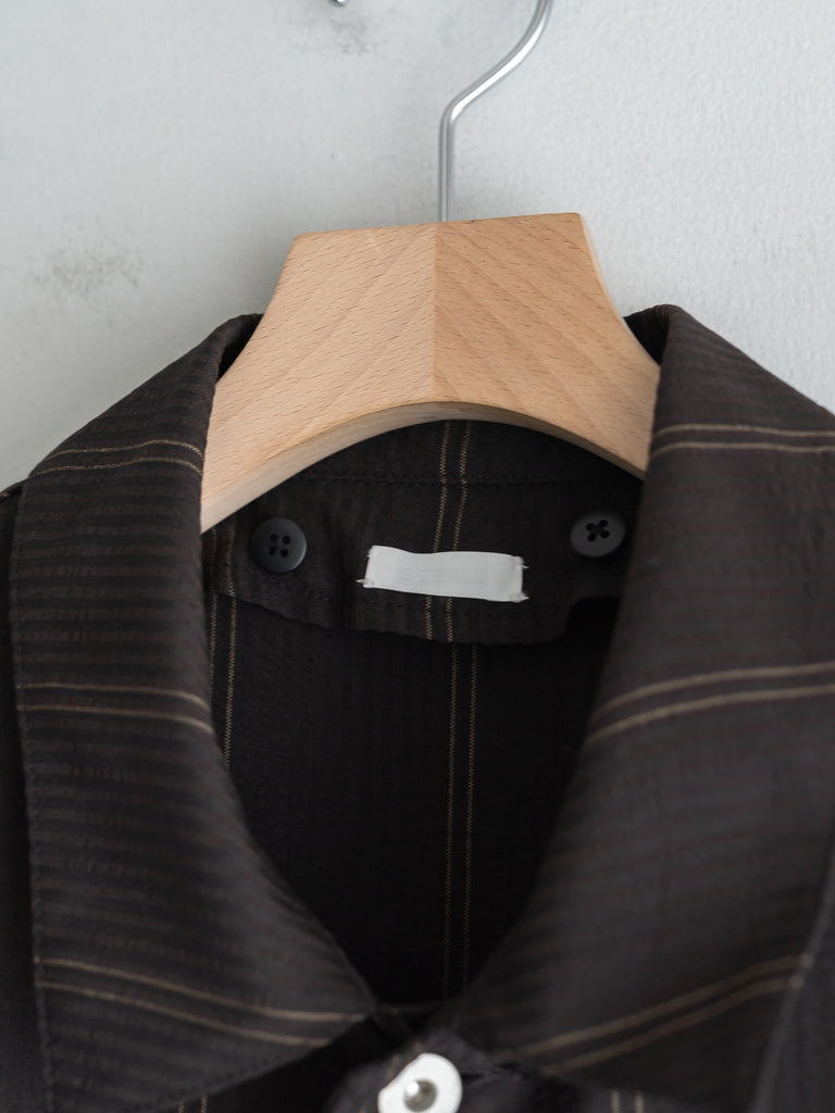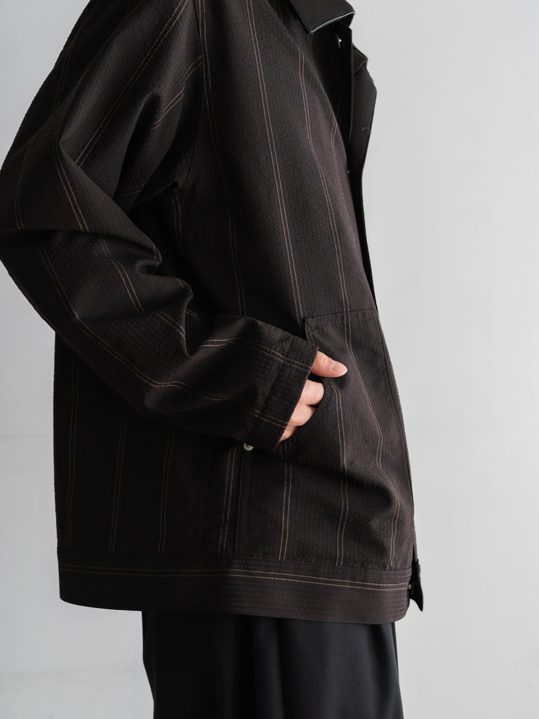 黒とダークブラウンで構成された濃色ストライプは、一見単色に見えながらも豊かなニュアンスを持ちます。
