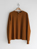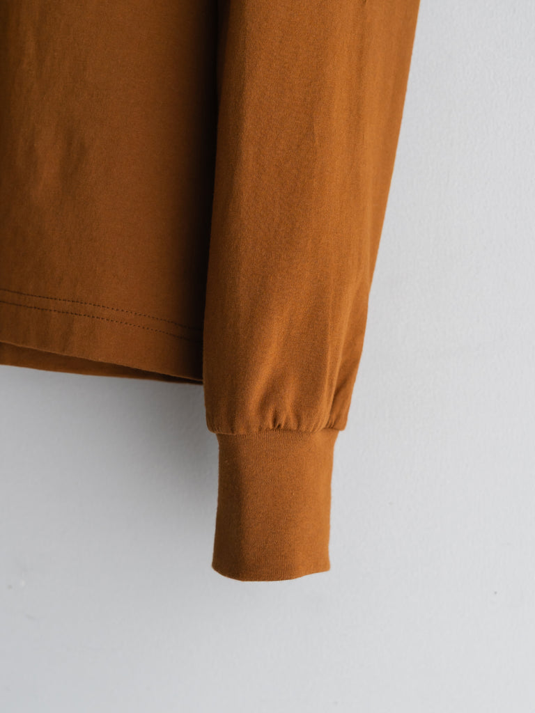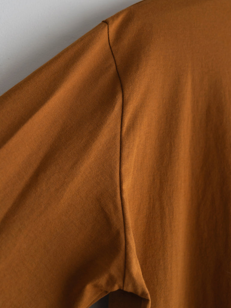 本来は太番手向けの製法をあえて30/1で仕立てることで、独特のシャリ感と軽さを両立しています。アメリカのヴィンテージTのようなラフな質感をベースに、ふっくらとした現代的なアップデートをプラス。