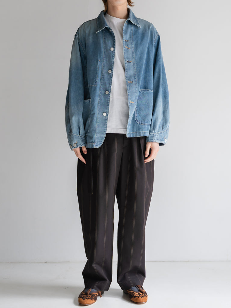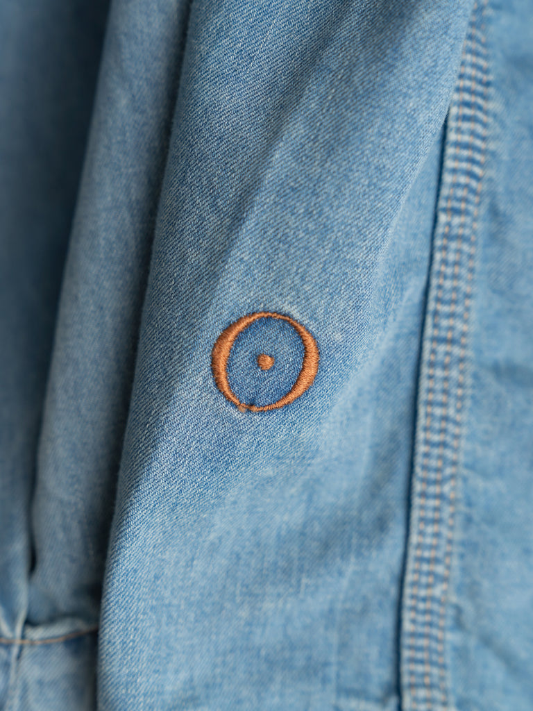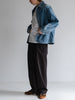 違和感を与えるようにシャツのような軽やかな7ozのライトデニムを使用しています。