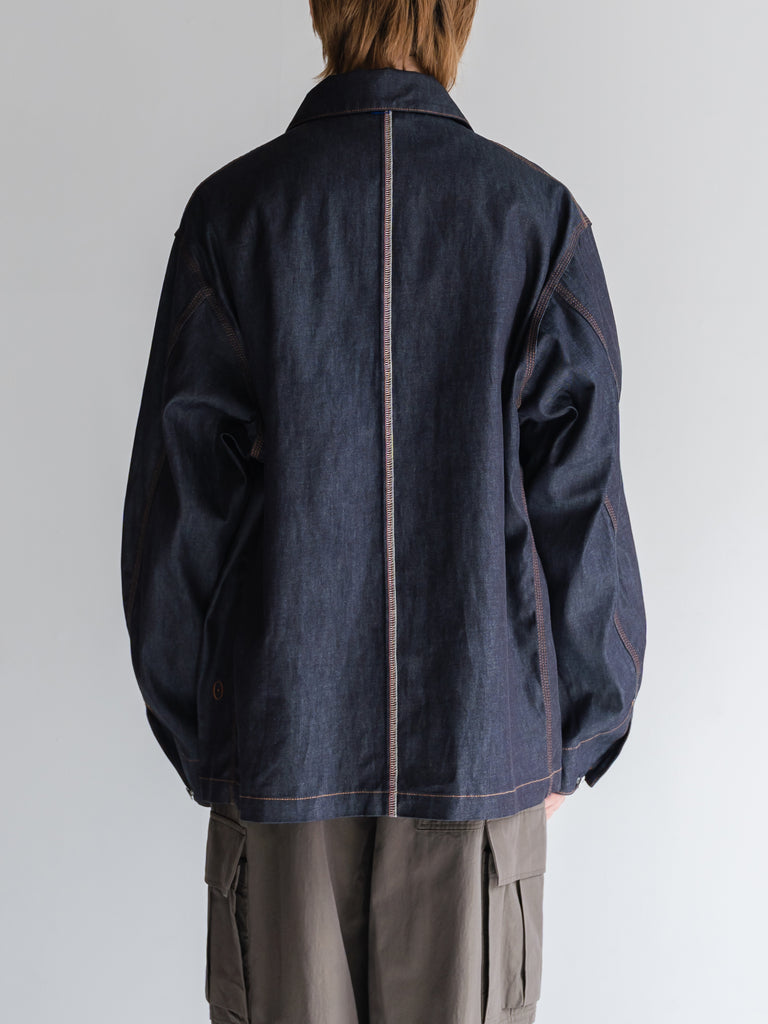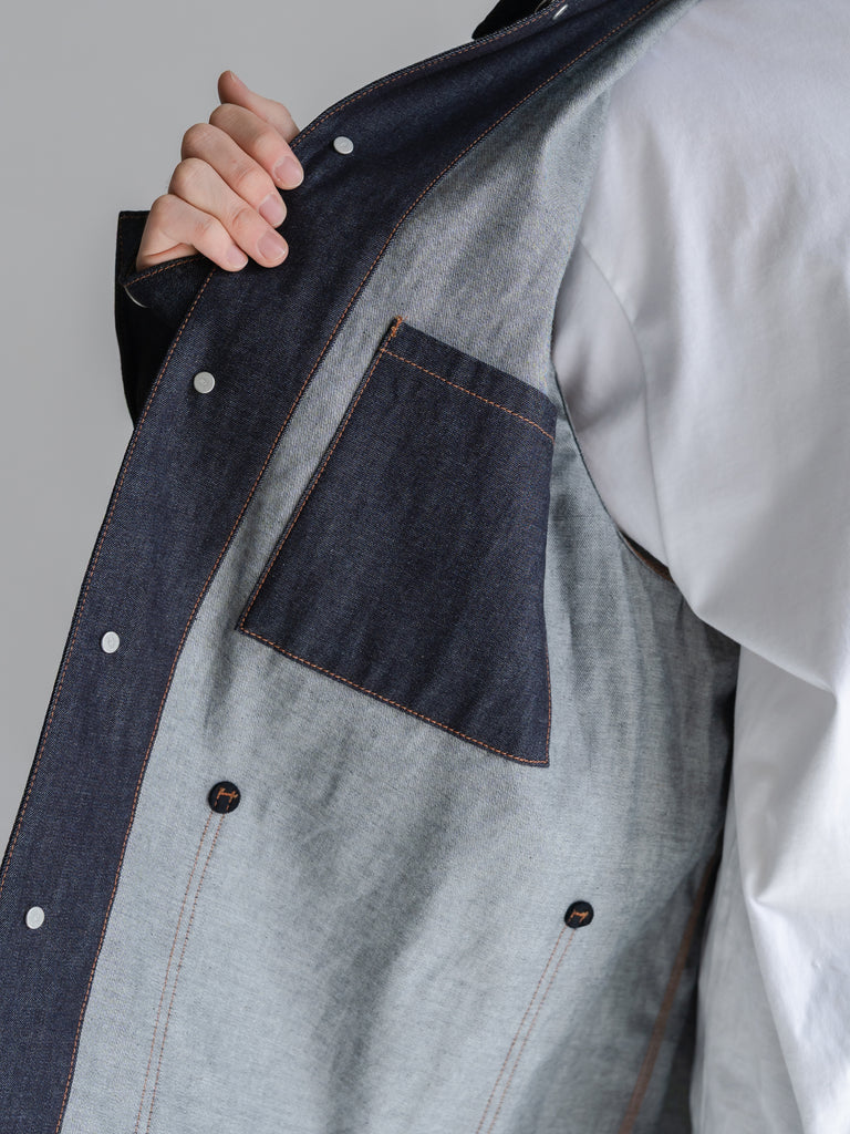 違和感を与えるようにシャツのような軽やかな7ozのライトデニムを使用しています。