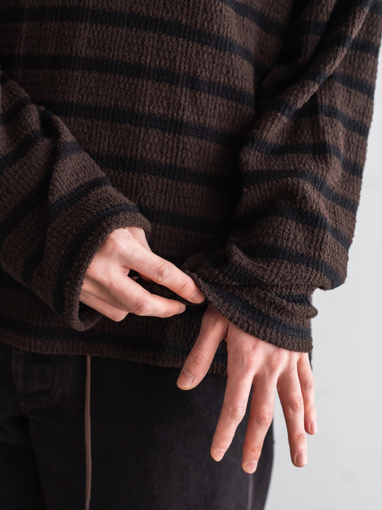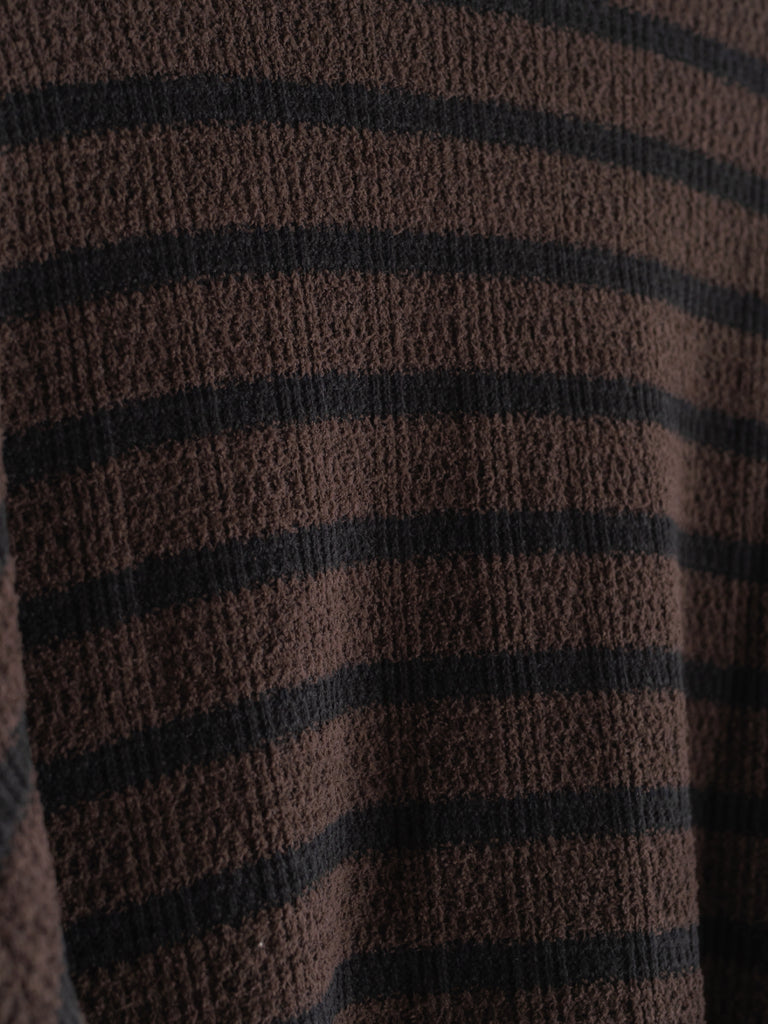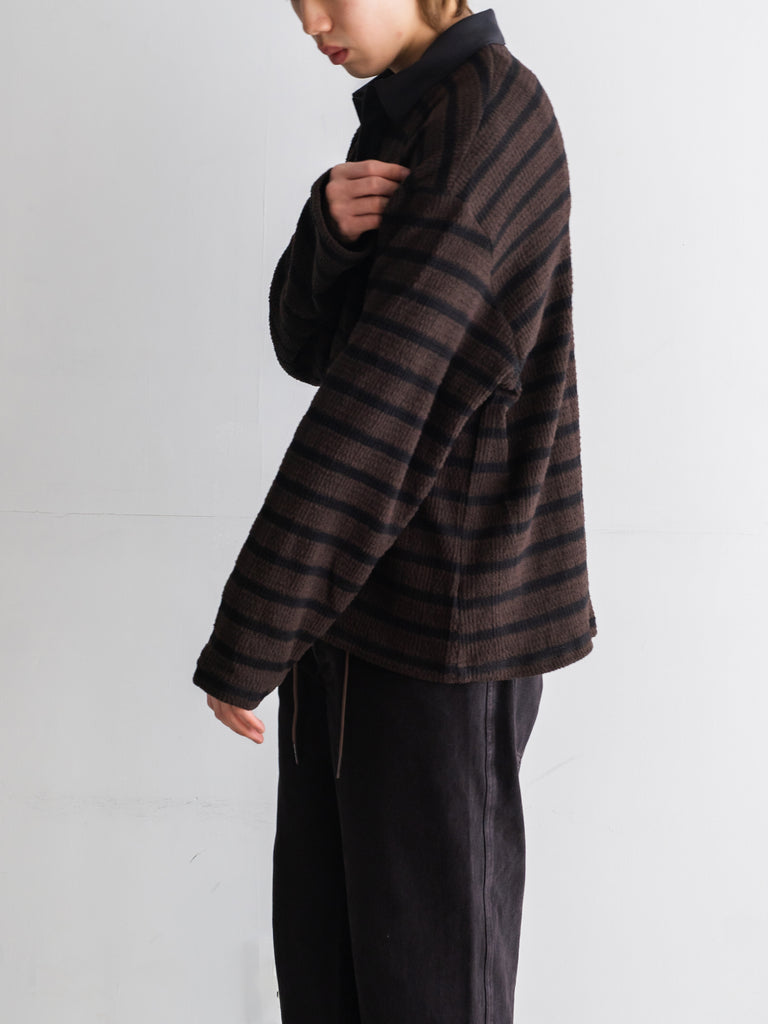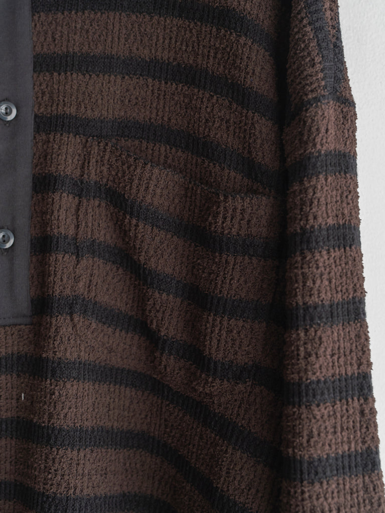 26.1年版『Yearbook』に新たに加わったロングスリーブポロシャツは、日本のベージュとブラウンのチェック柄織物で仕立てられ、しっかりとしたシルエットと柔らかな肌触りを両立。コントラストを効かせたベージュのリブ編みカラーと前立てがさりげないアクセントとなり、裾と袖口は切りっぱなし仕様で、クラシックなシルエットに控えめなエッジを添えています。