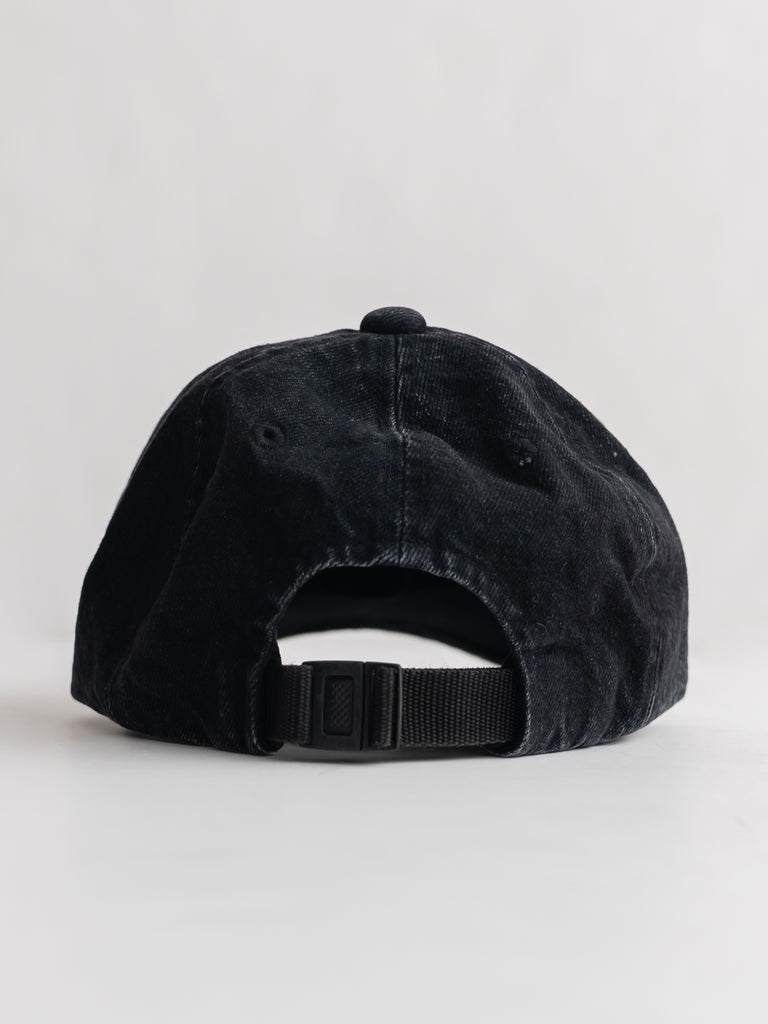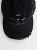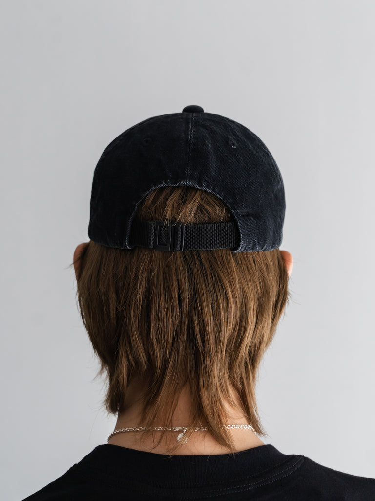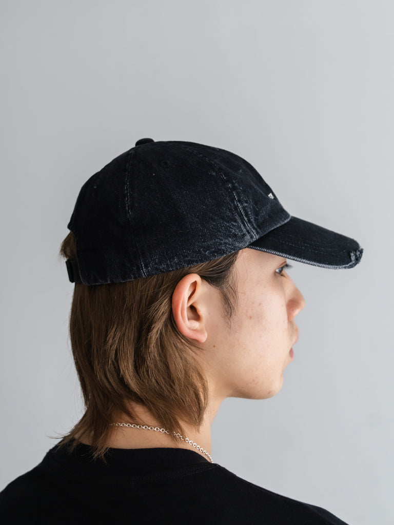 クラシックなベースボールキャップを再解釈し、オーバーダイデニムならではの柔らかな色落ちと、つばの生地端のほつれがこなれた表情を演出します。
