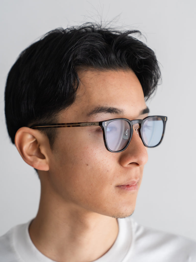 スリムなスクエアシルエットが、静かで知的な存在感を生み出すアイウェア。