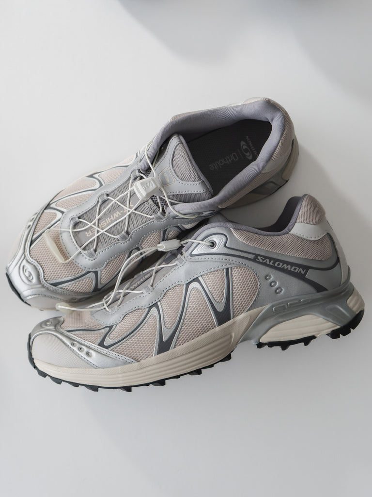 Salomon の DNA と XT のデザイン系譜を受け継ぐ XT-Whisper は、独特の質感や、レイヤー構造の高級感のある仕上げを特徴としています。