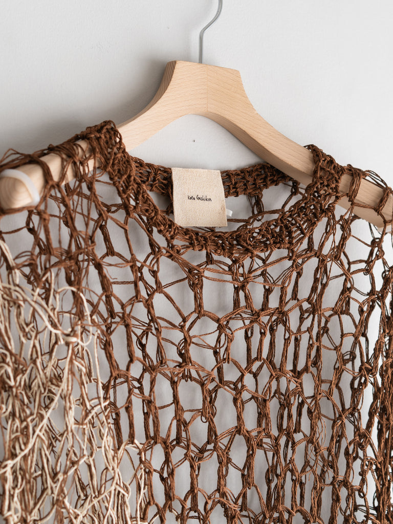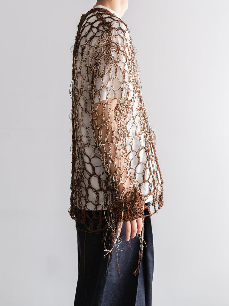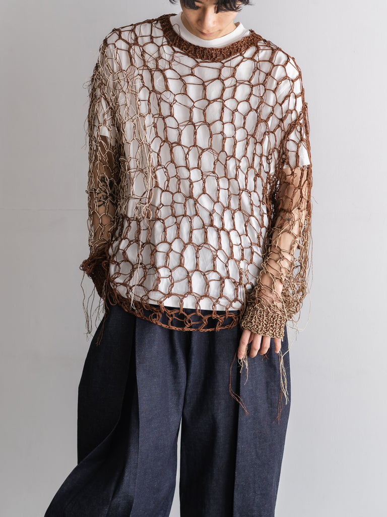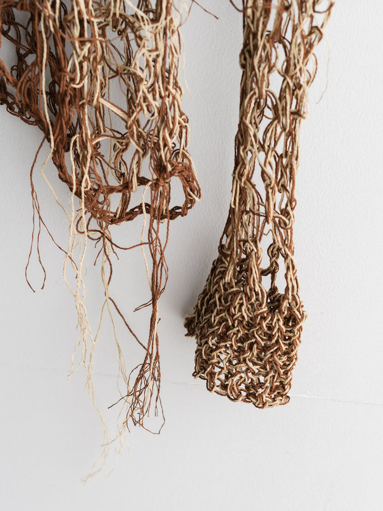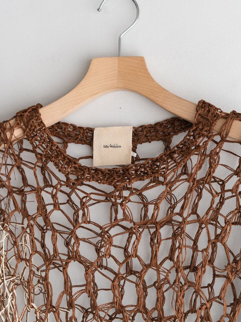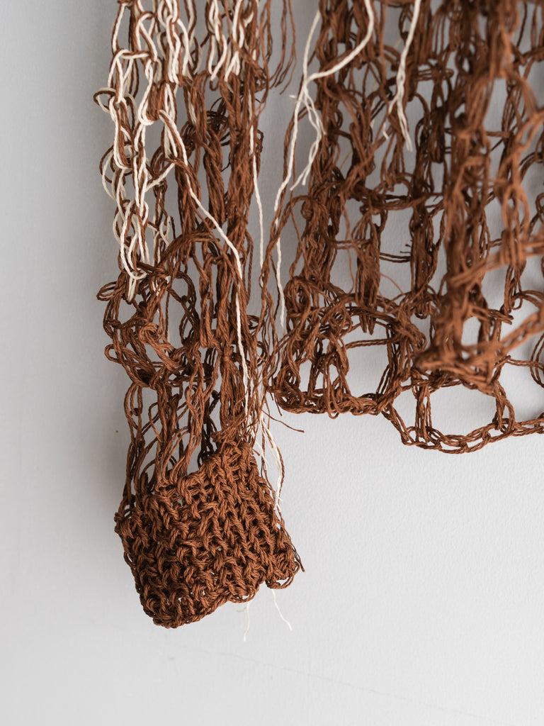 ゆるいニットは糸引きが怖いのですが、一目ごとに結びながら編んでいるので見た目ほどは糸引きがしずらいですがゼロではないです。