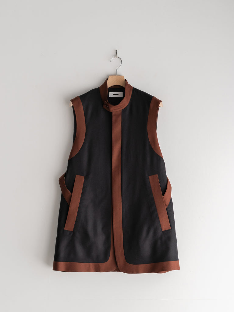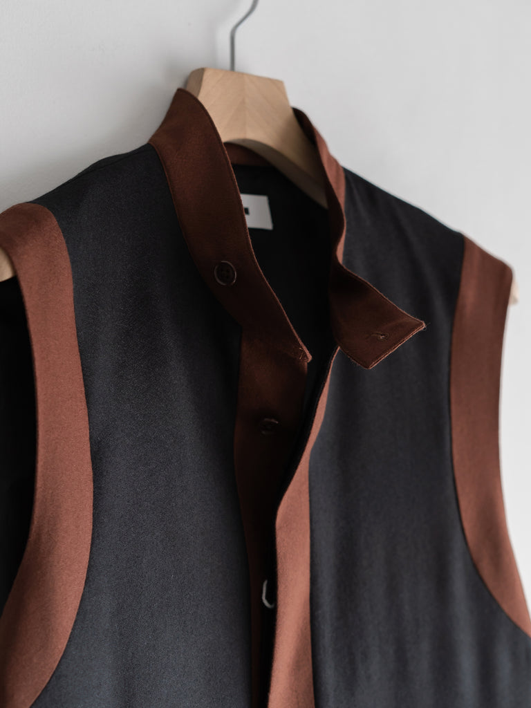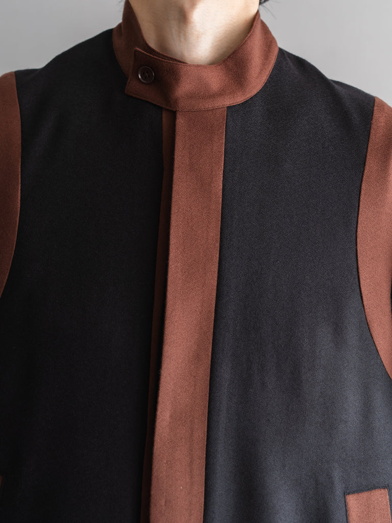 衣服を縁取ったような2トーンデザインのベスト。