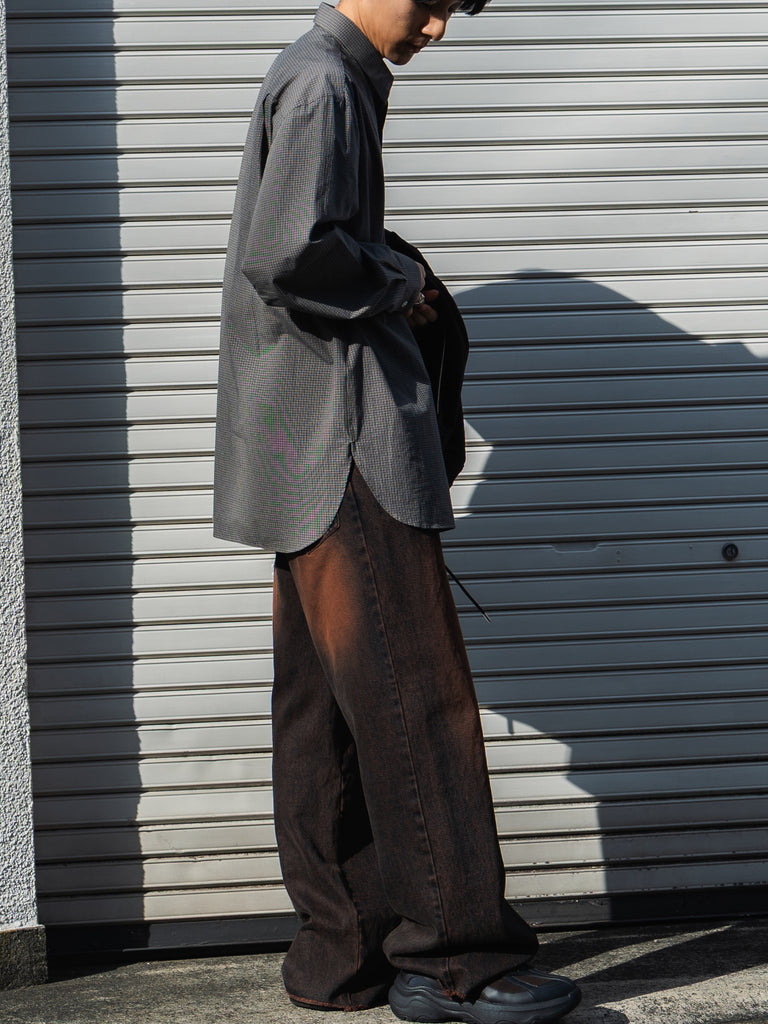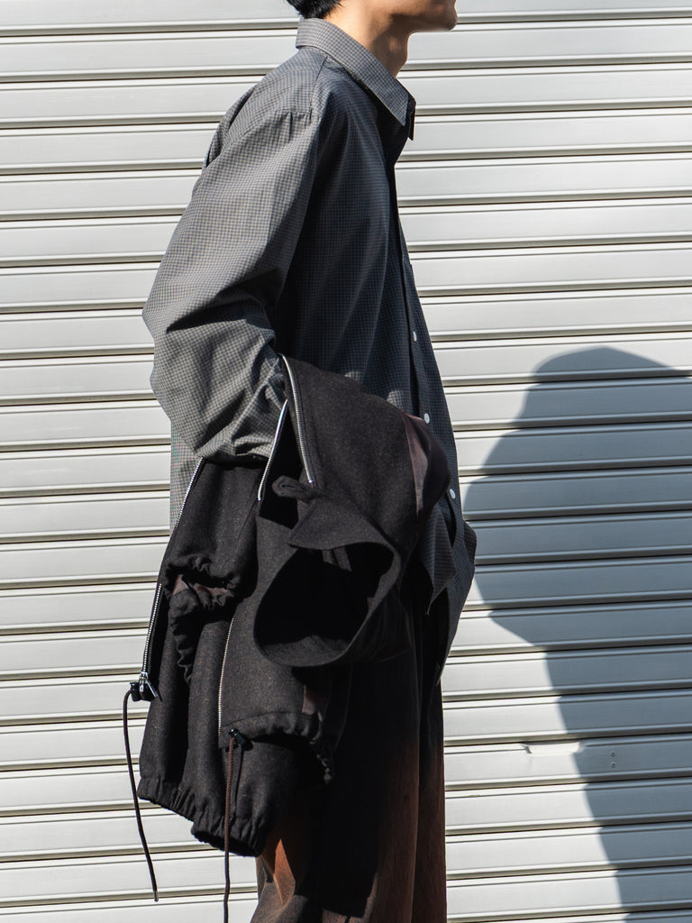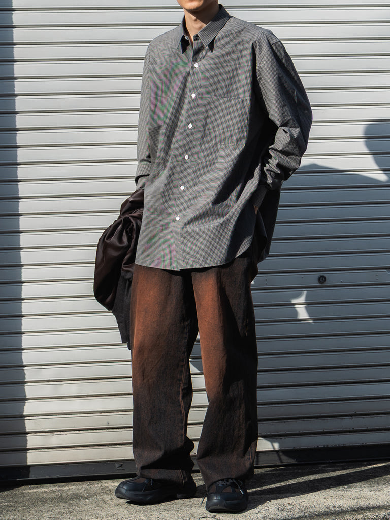 落ち着いた色目の細かなチェック柄は主張し過ぎず合わせやすく、ニットやコートのインナーとしても重宝します。