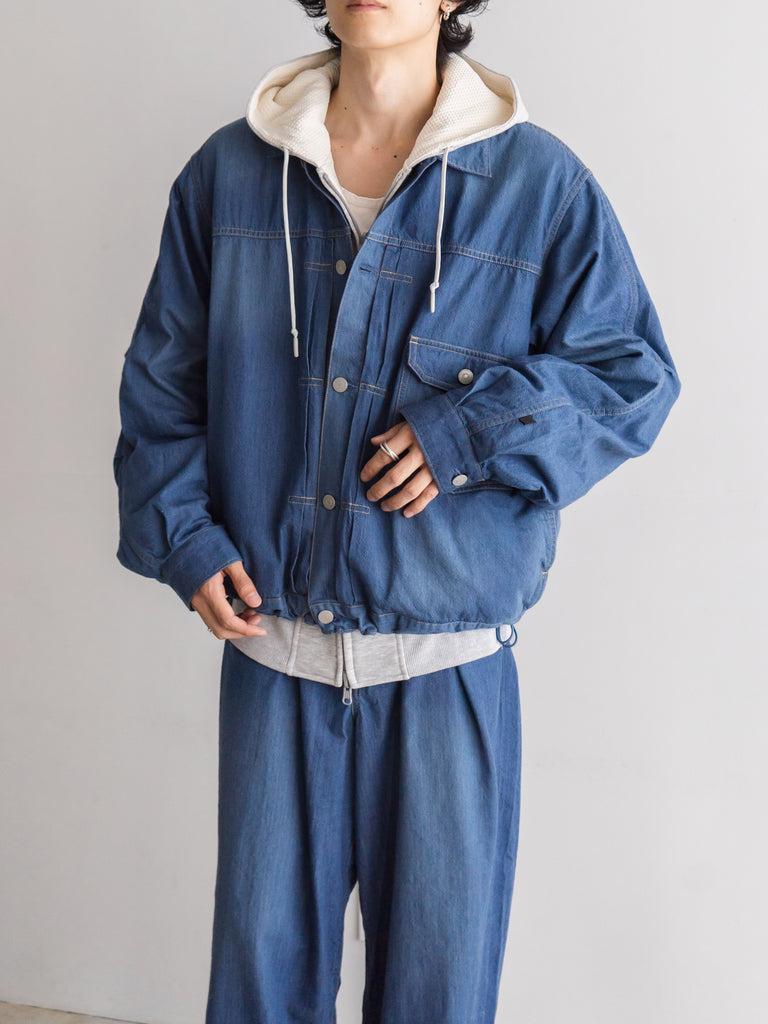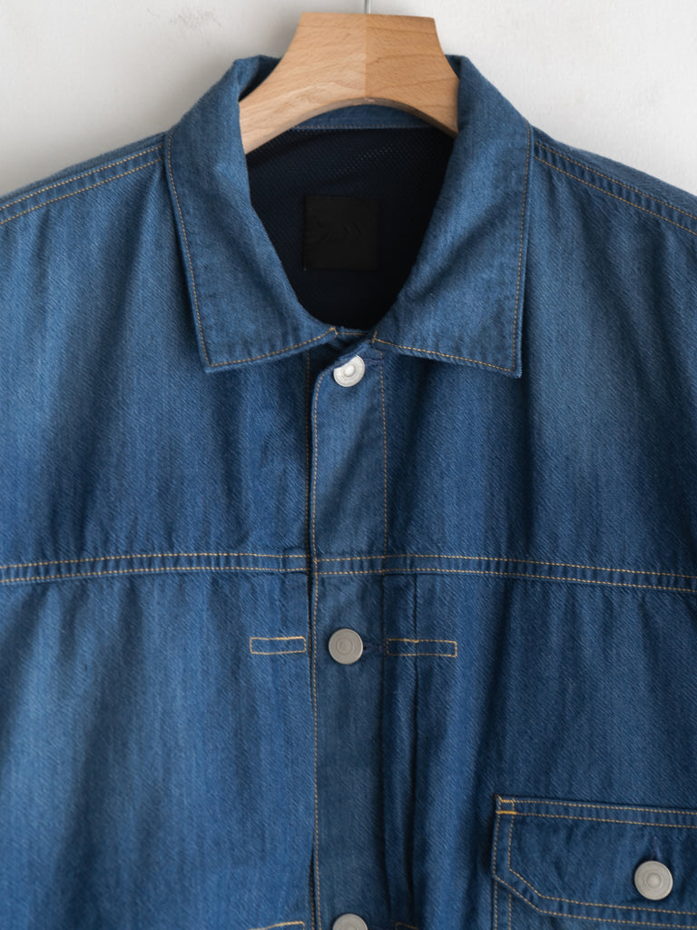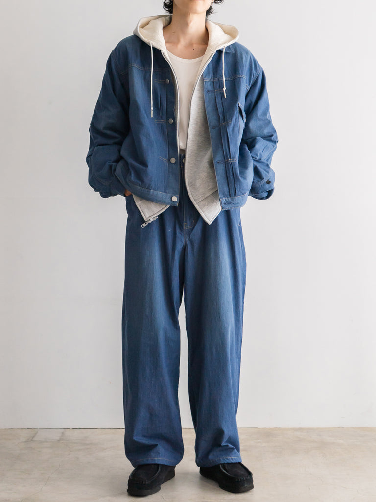 カジュアルシーンのみならず、スポーツやアウトドアシーンにも適した、デニムなのに速乾性が高く、軽量かつ丈夫な素材を使用。