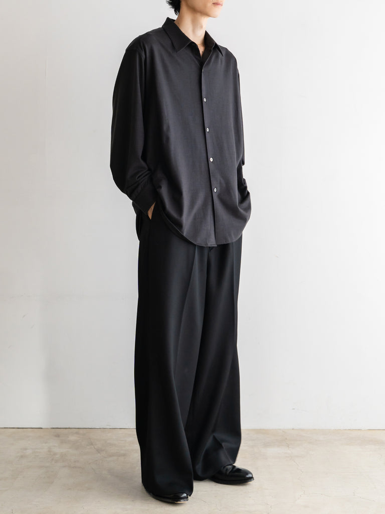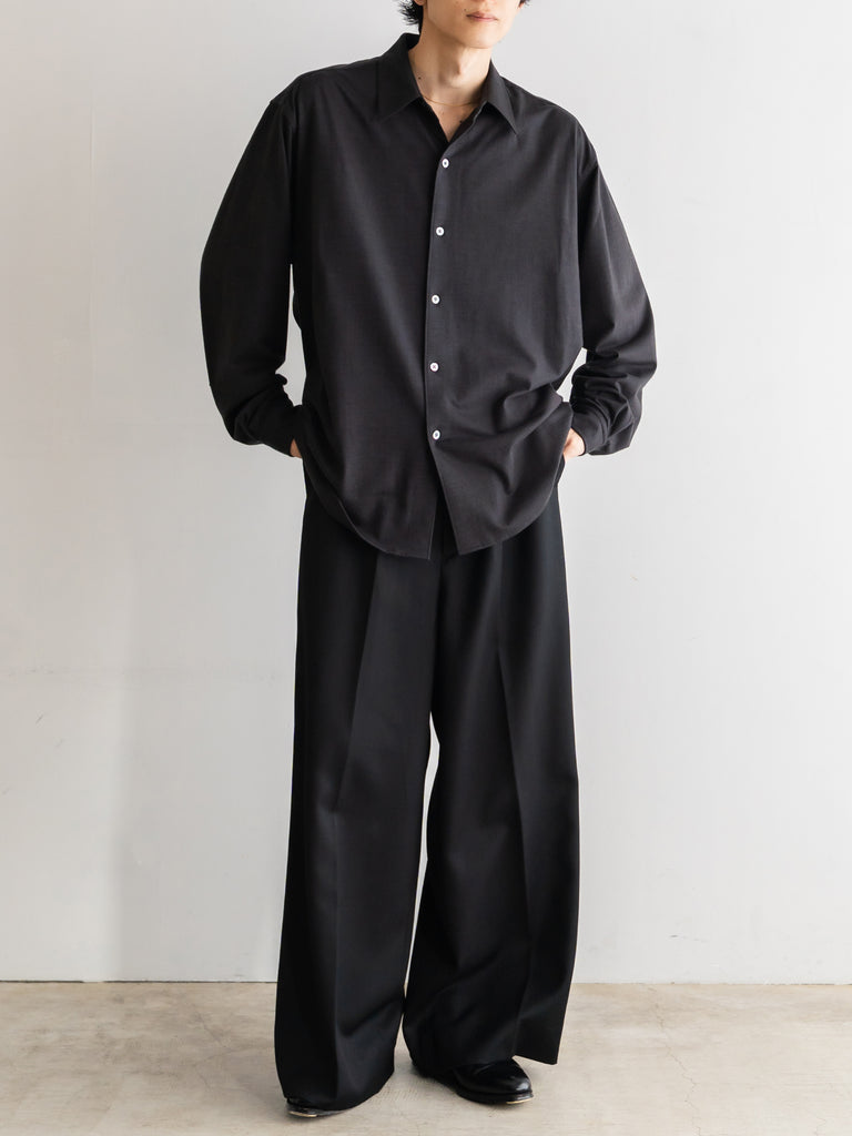 程よいゆったり感だが、素材が落ちすぎないように計算し作成したシャツです。