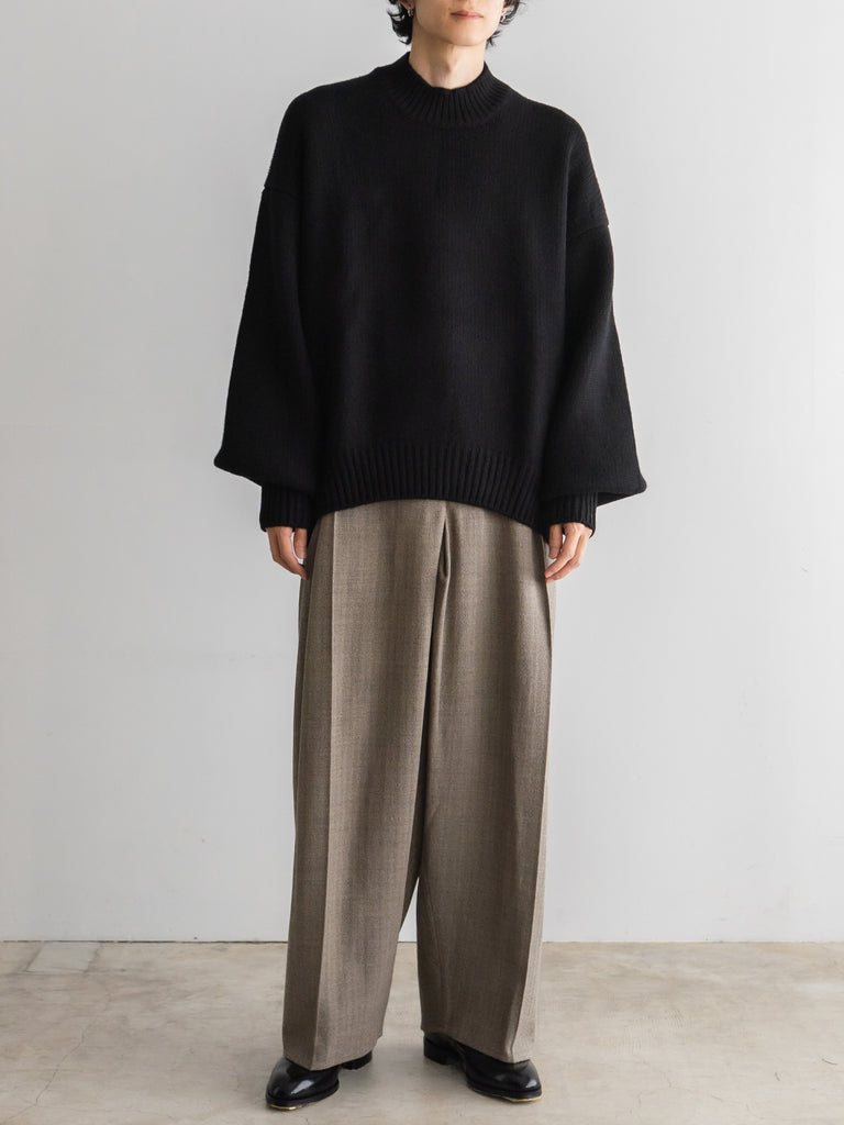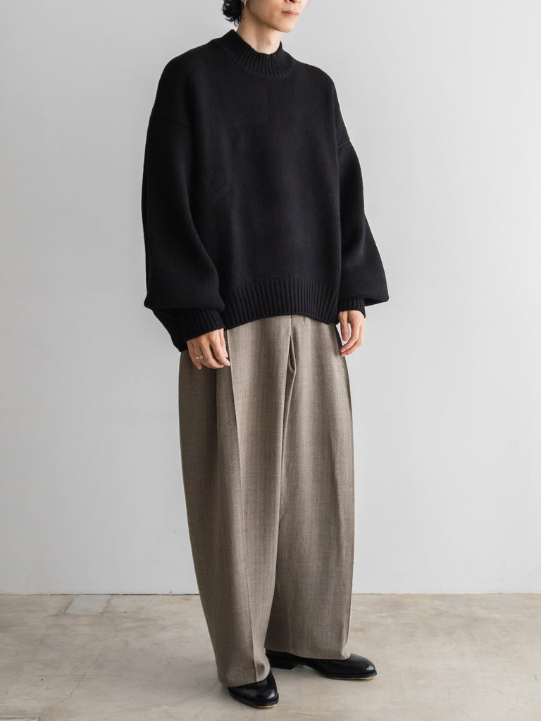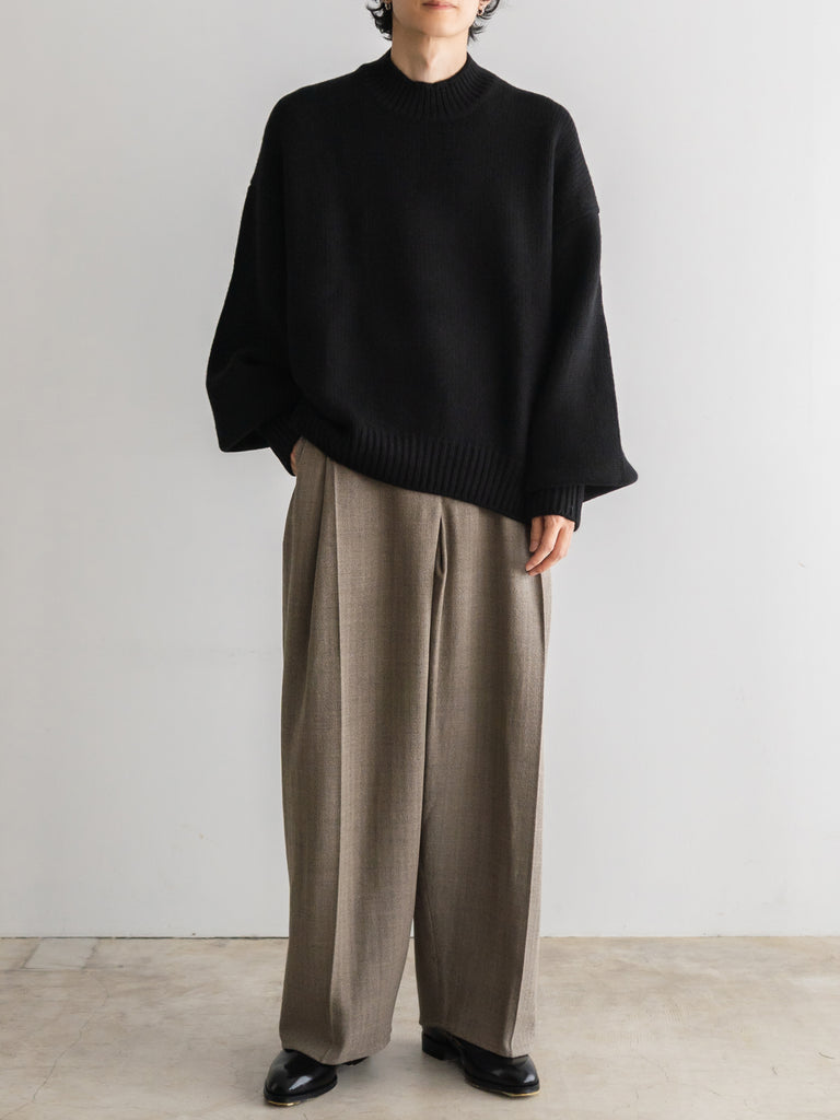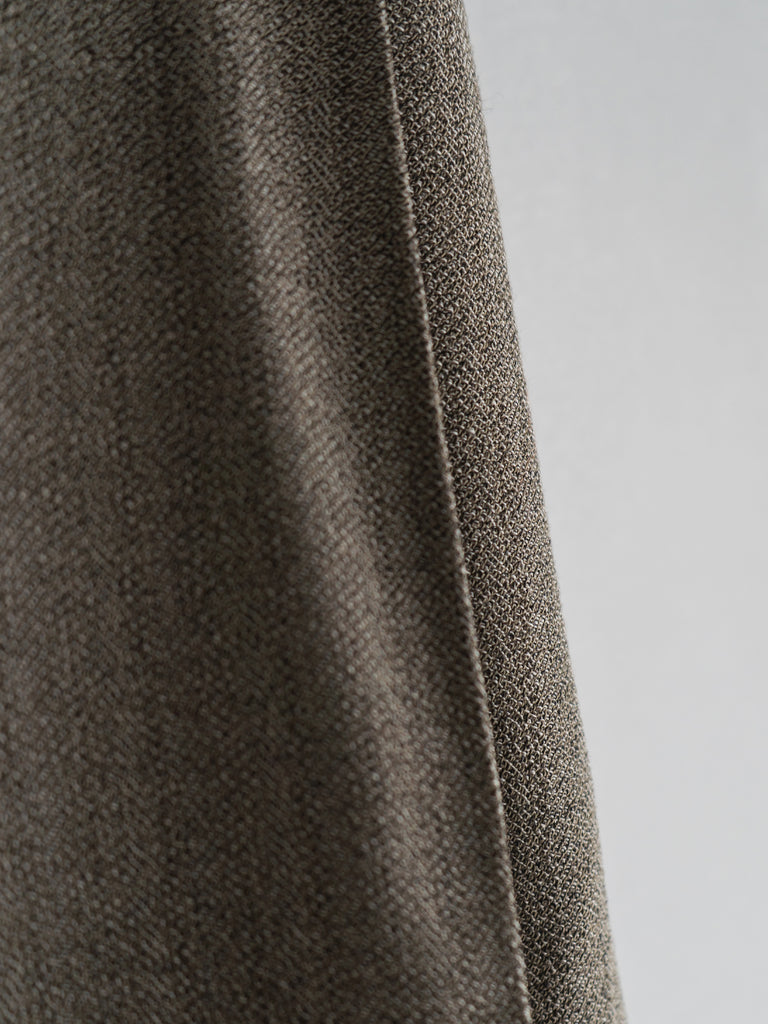 しっかりと打ち込まれた密度に梳毛の糸によるドレープが生まれております。
