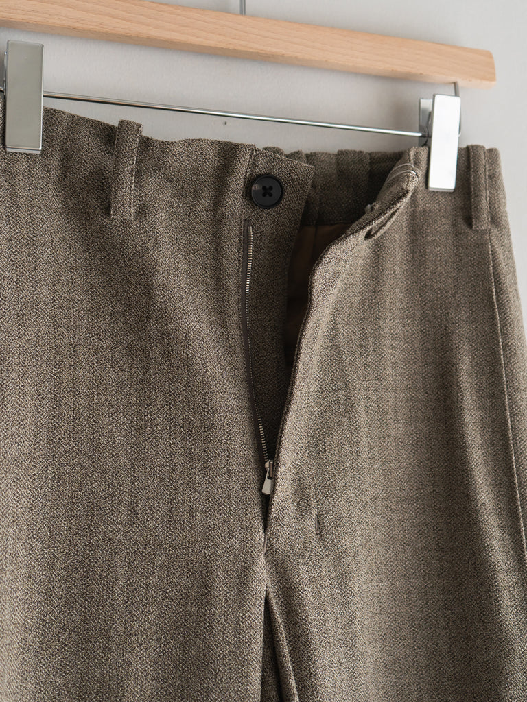 ヘリンボーン組織を手でほぐし、曖昧に散らして自分の理想的なバランスを織りで再現しました。