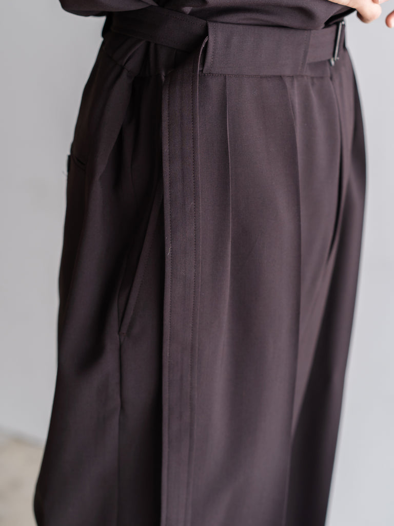 ウェストには共地のベルトがついており、ウエスト位置を好みの位置で着用いただけます。