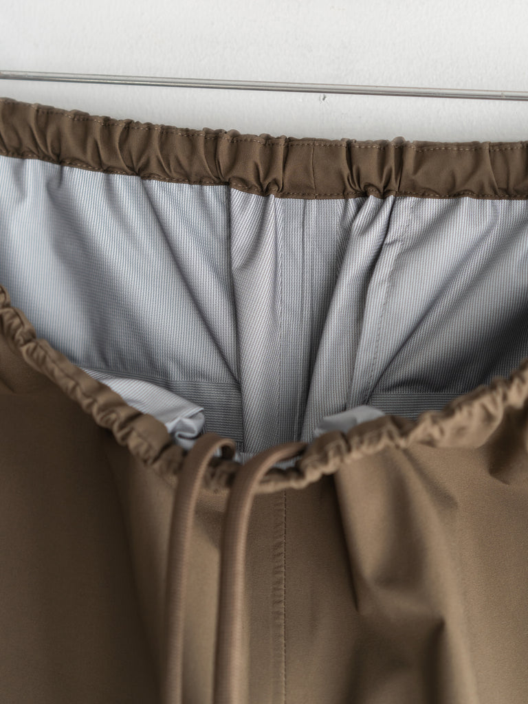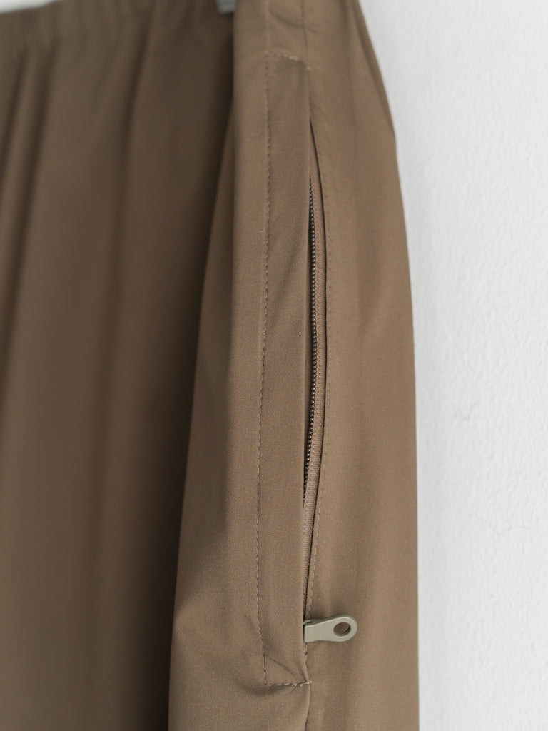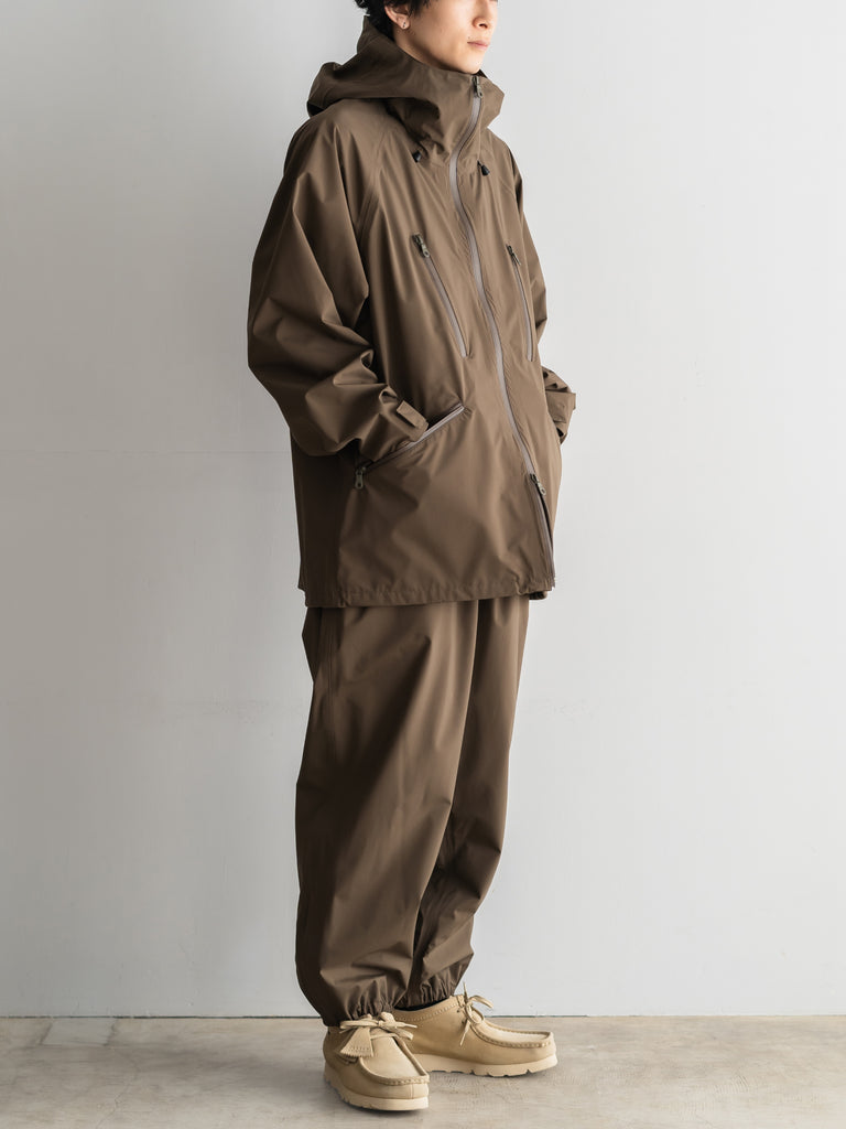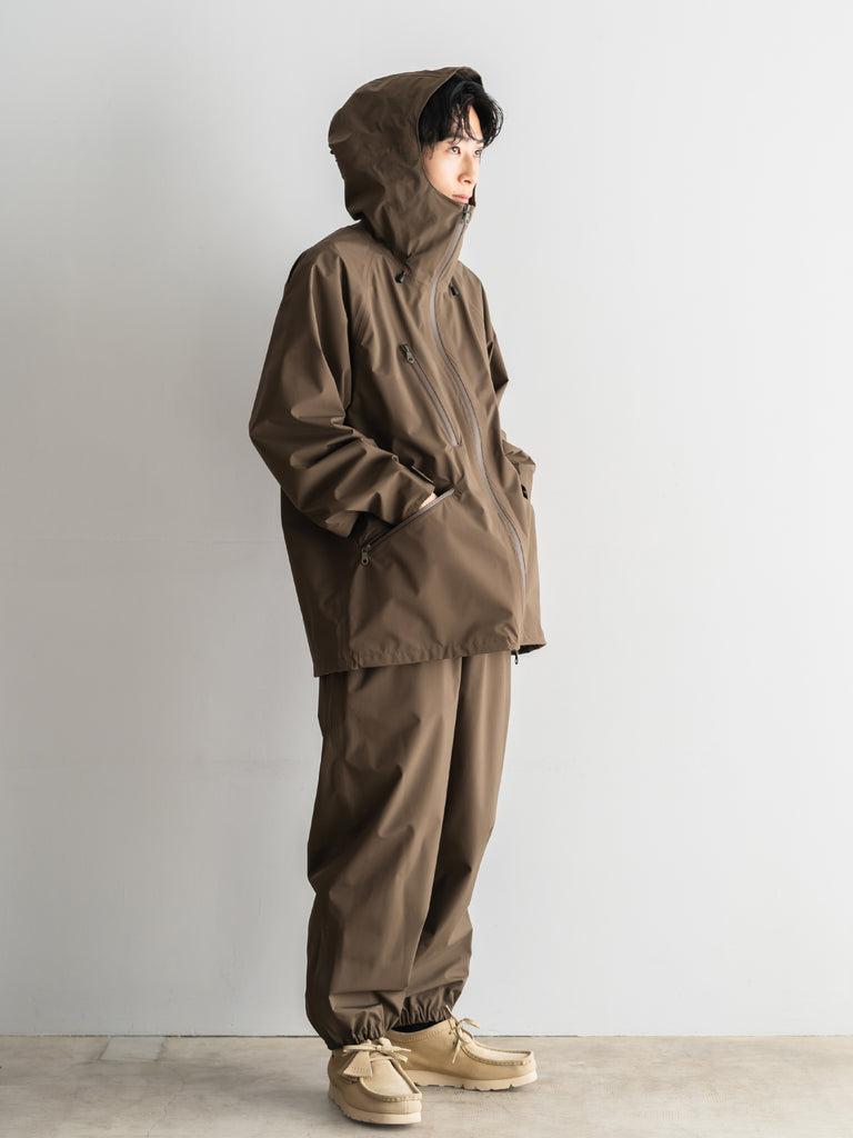 ストレッチ性があり、高耐水・高透湿性を持ち合わせた生地に、シームテープ、止水ファスナーを施した3層構造(3レイヤー)のアイテム。