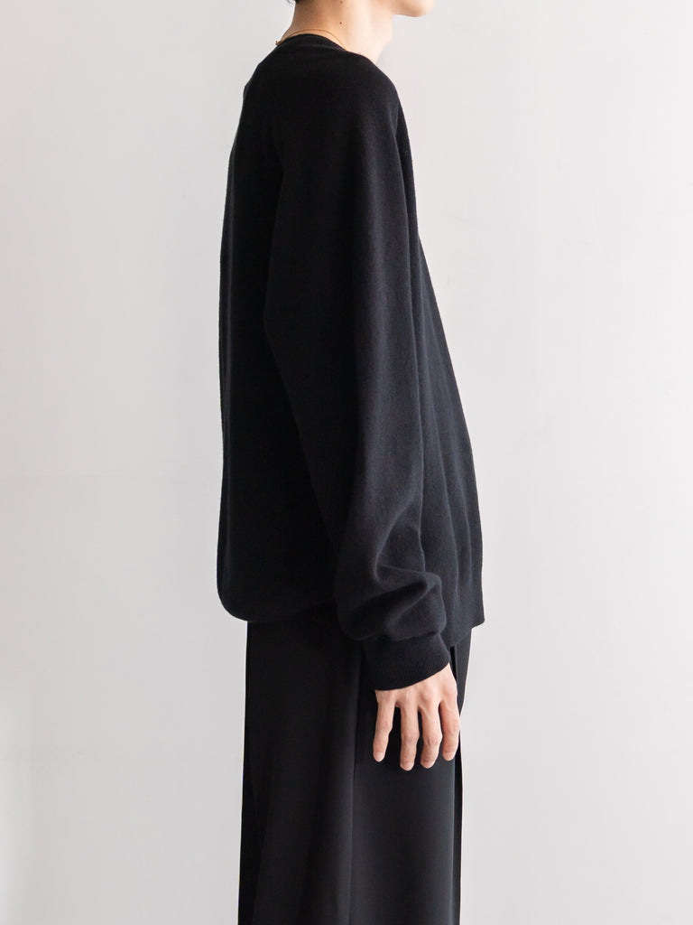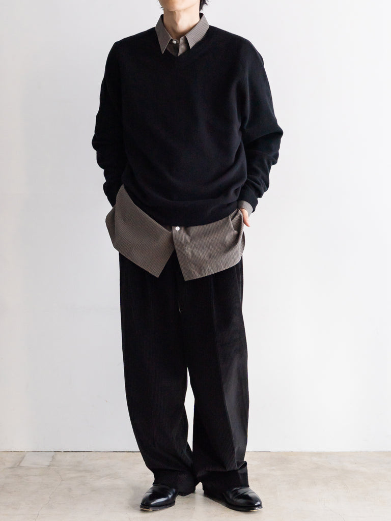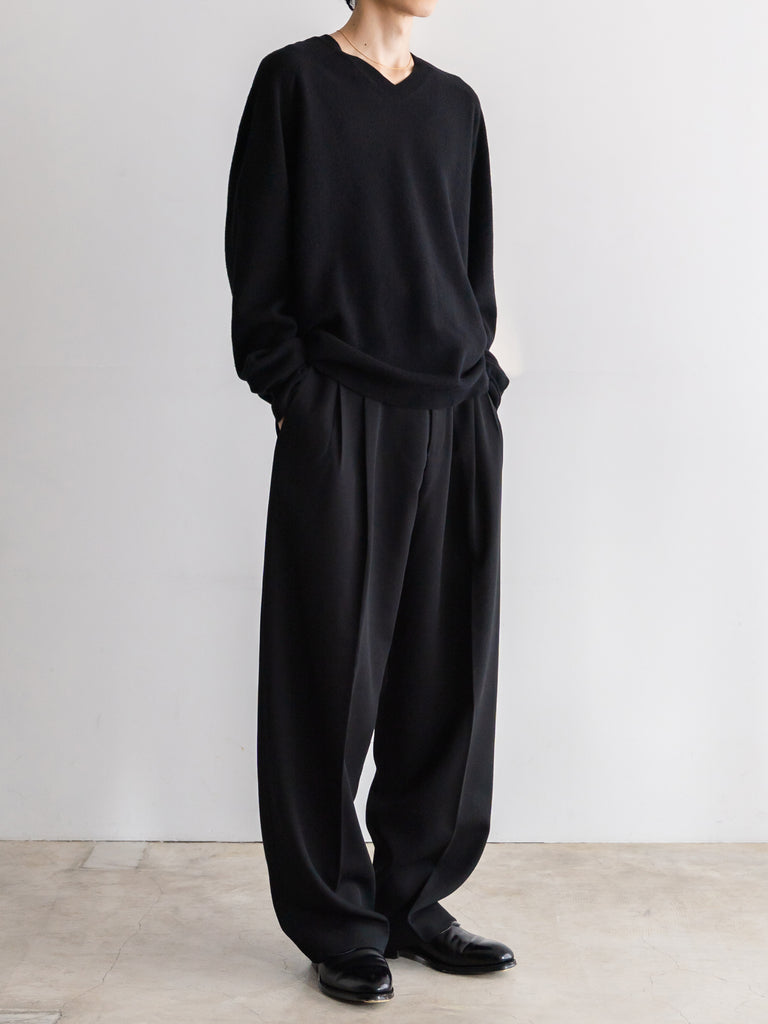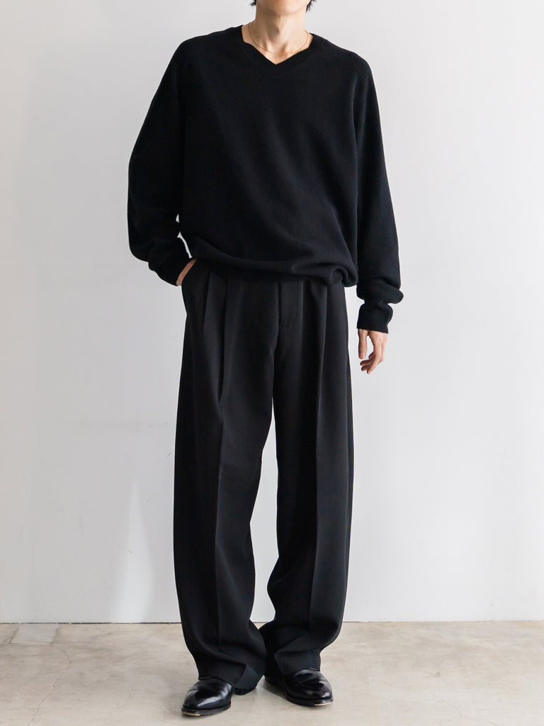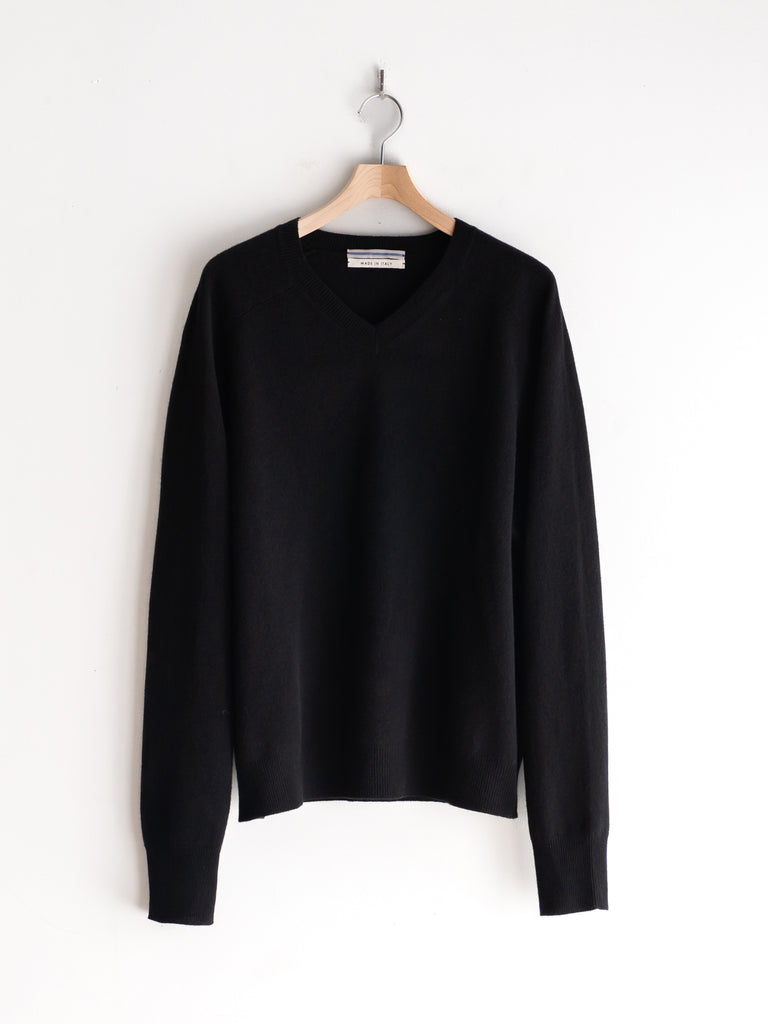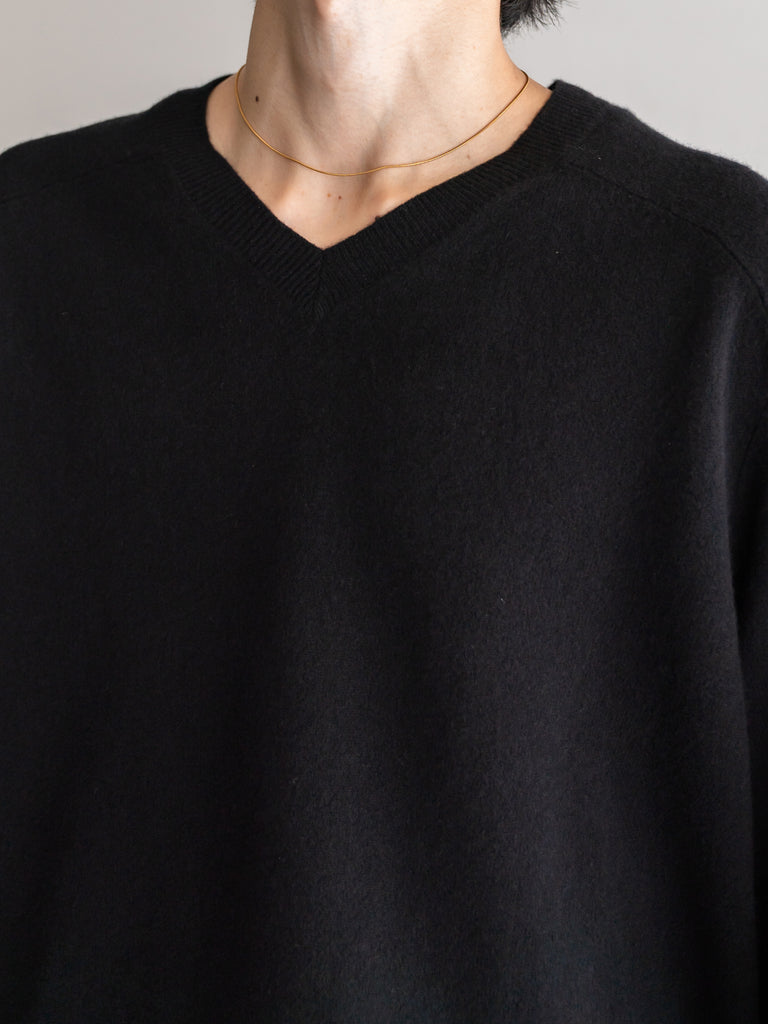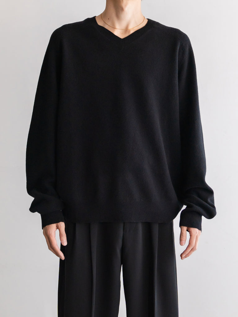 季節の移り変わる曖昧な時期に一枚で決まる上品なVネックライン、寒くなったらシャツやタートルを首元から覗かせて着たりと何かと手に取りたくなる一枚です。