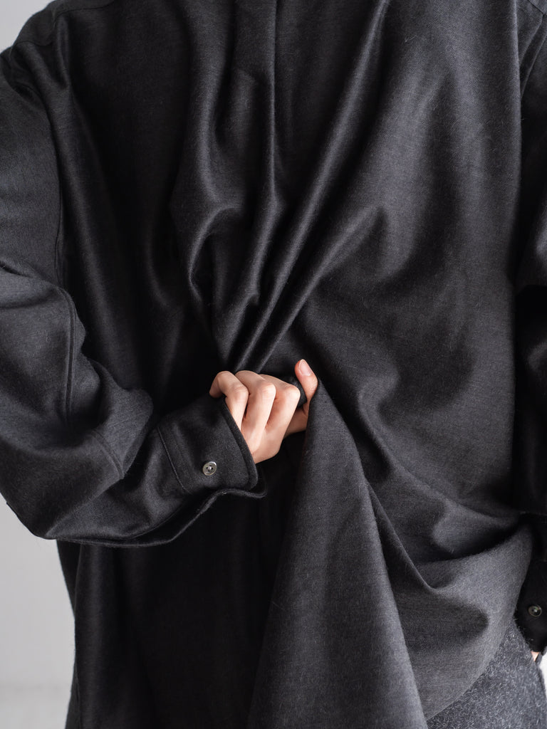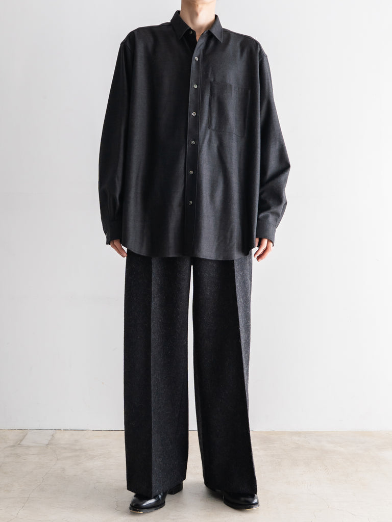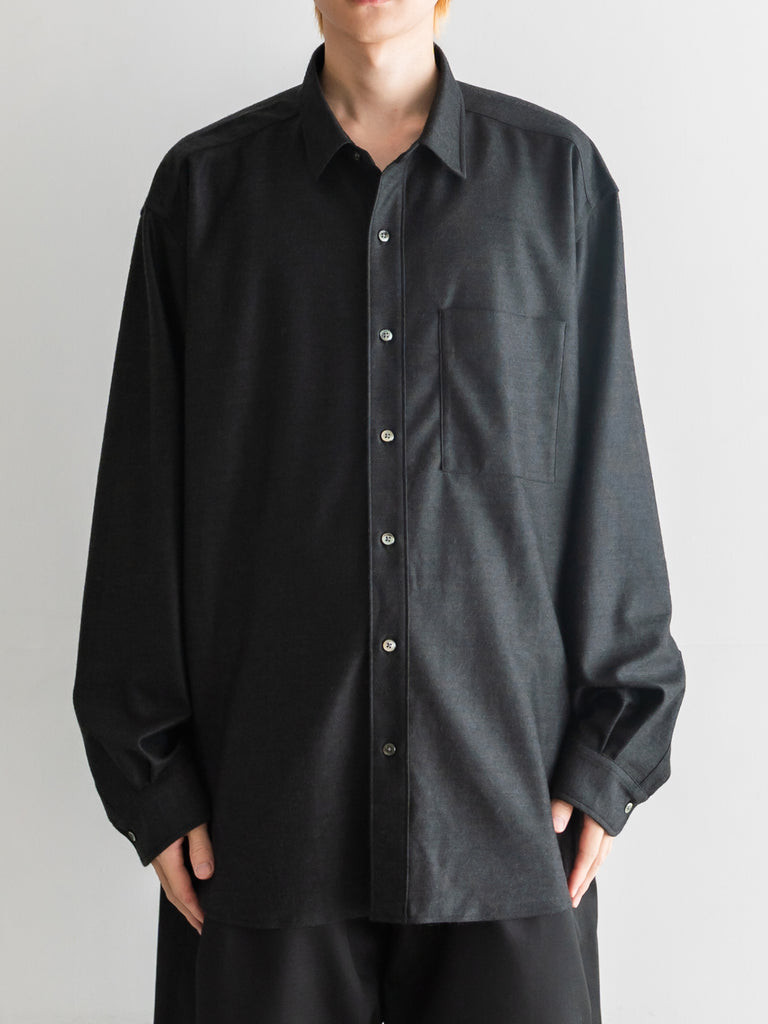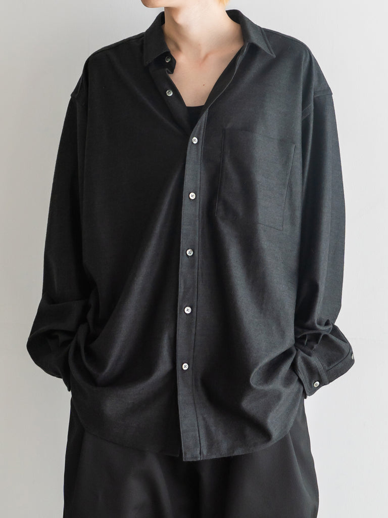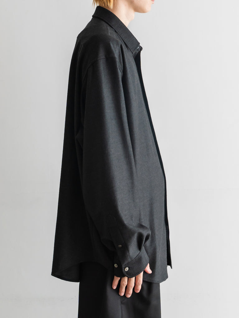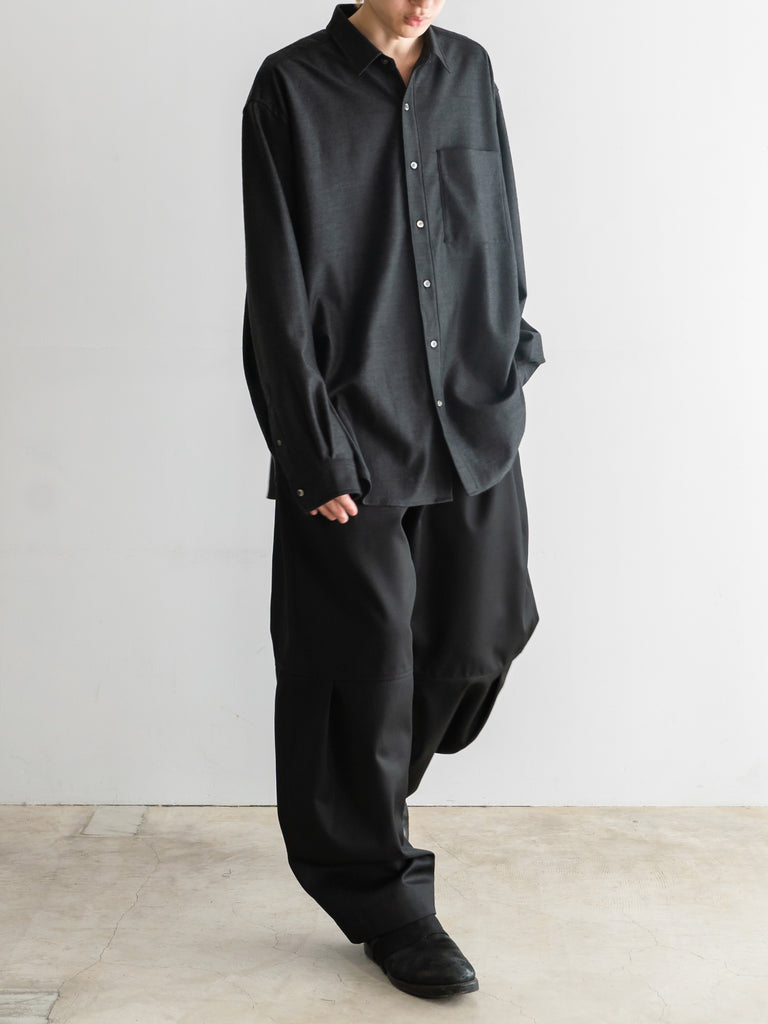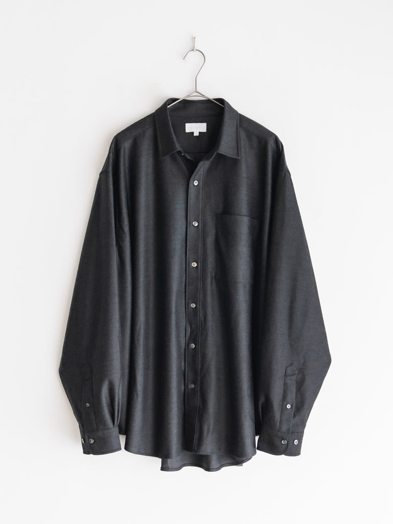 “atmosphere” 空気を纏うという名前の通り、ゆったりとしたシルエット、素材の落ち感がわかりやすい定番シルエットのシャツです。