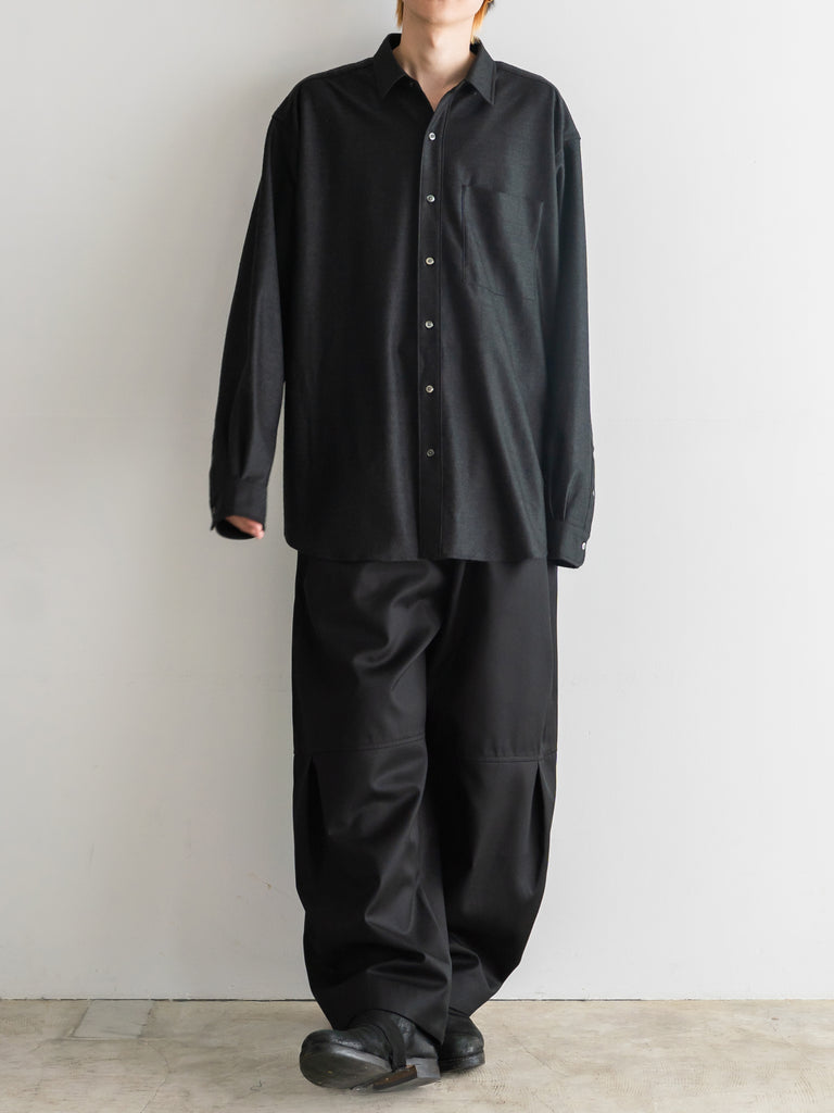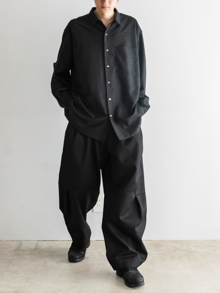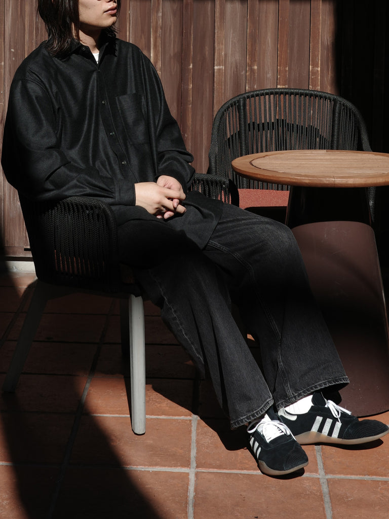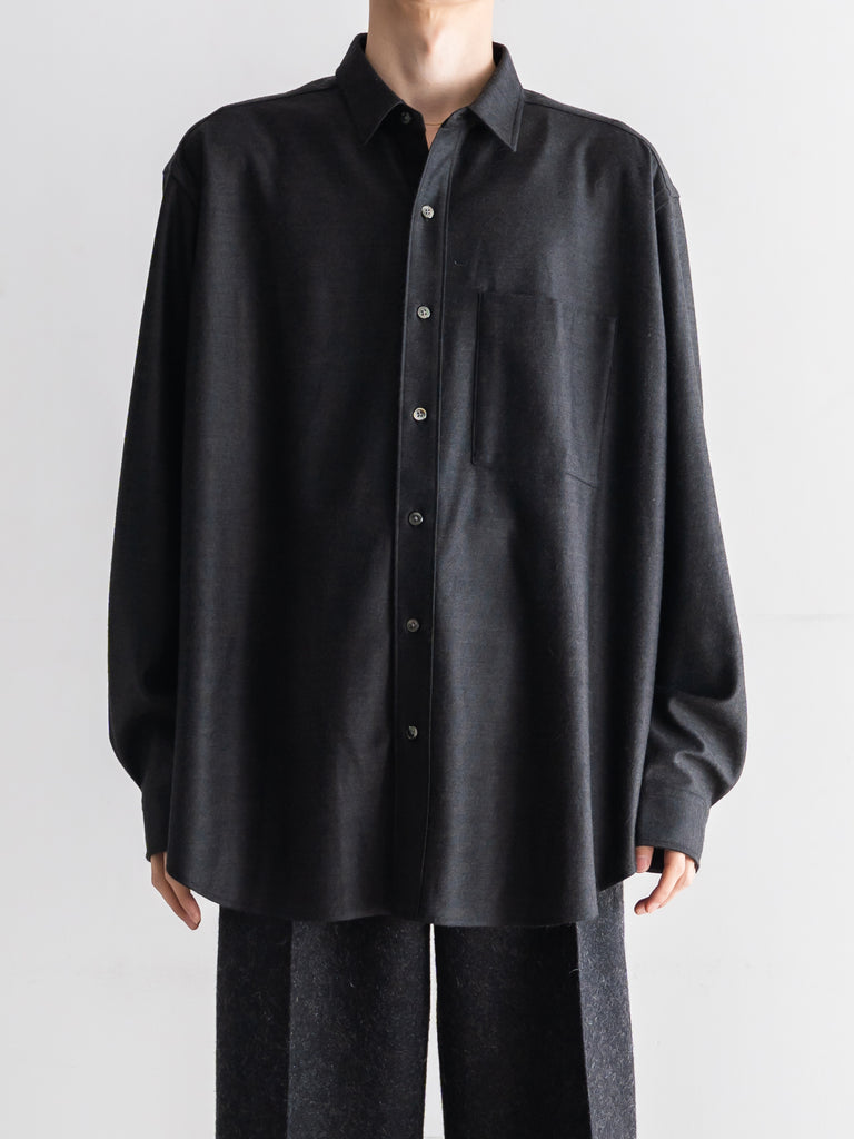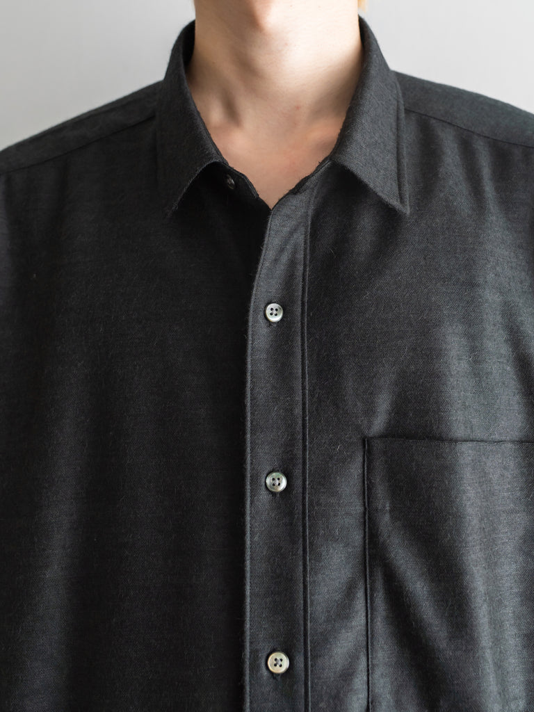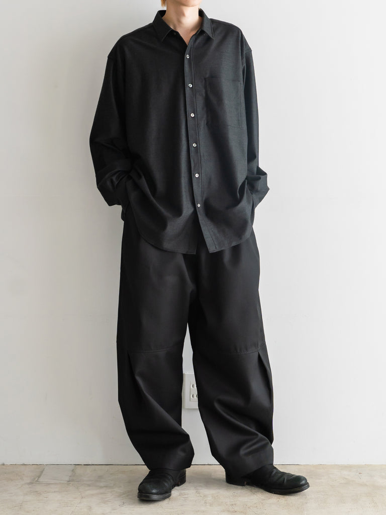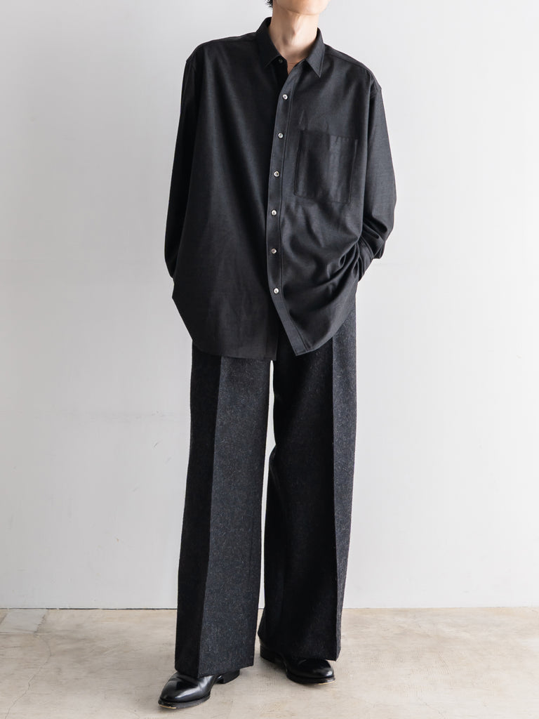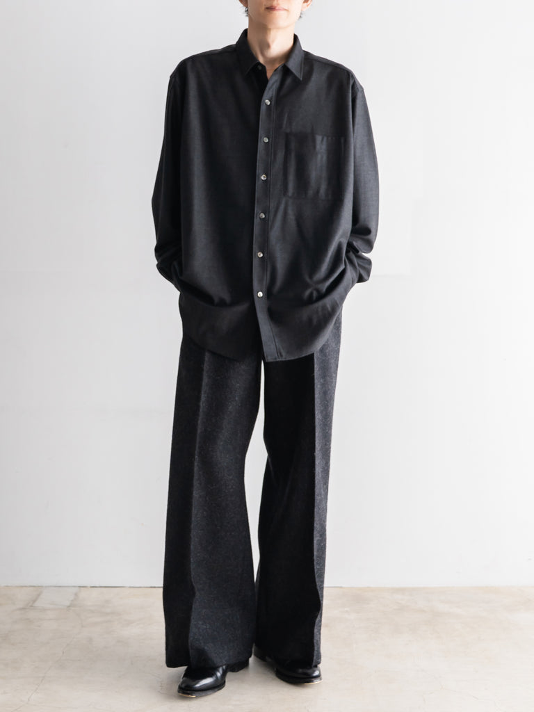 “atmosphere” 空気を纏うという名前の通り、ゆったりとしたシルエット、素材の落ち感がわかりやすい定番シルエットのシャツです。