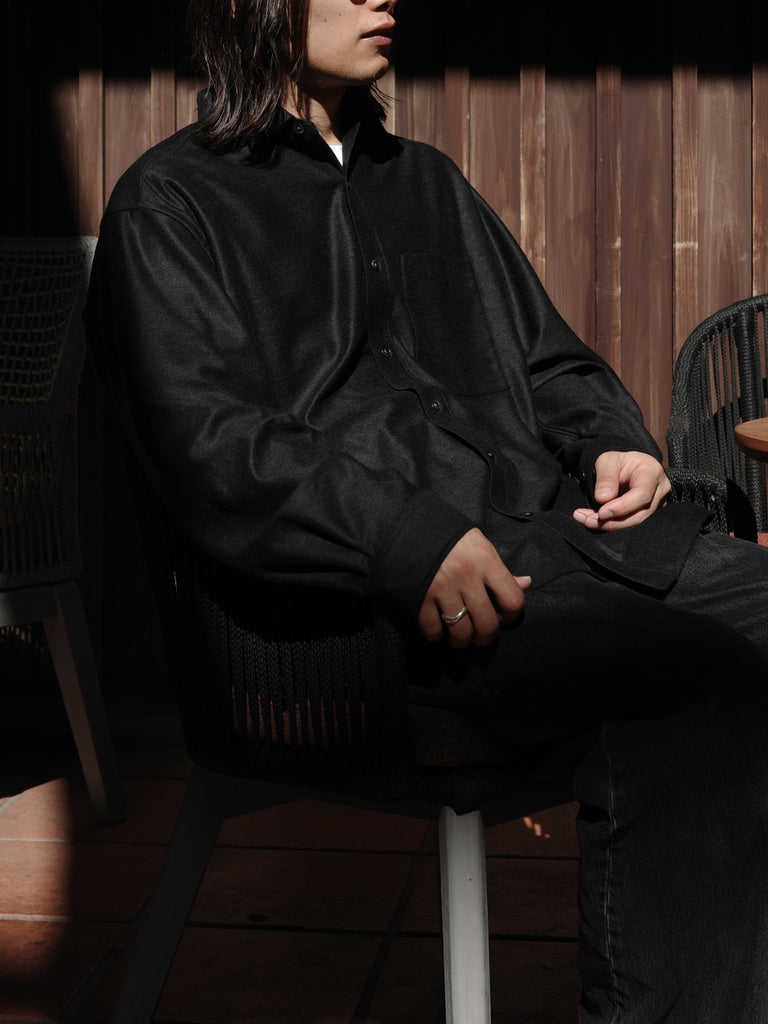 KANEMASA PHIL.の定番ルーズシルエットシャツに、高級素材を組み合わせた別注アイテムになります。