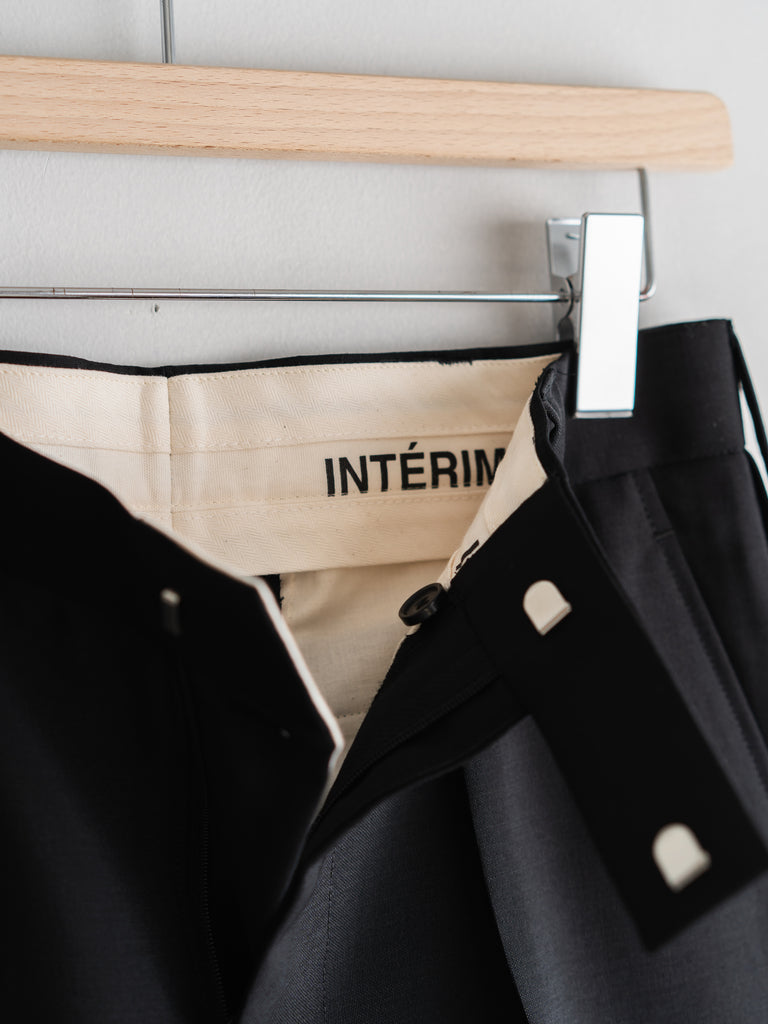 "INTÉRIM(INTERIM,インテリム)"とは"暫定的なもの"を意味する語。目まぐるしく変わるファッションシーンの中で、普遍的なアイテムを提案していく。