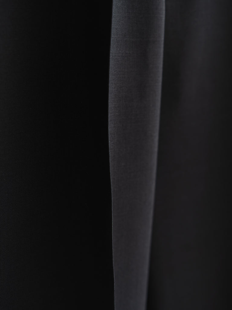 ⾼級素材の細番⼿⽷を強撚にしほどよい厚みに織り上げた、端正でストイックな印象の⽣地です。