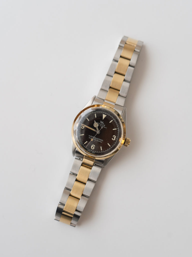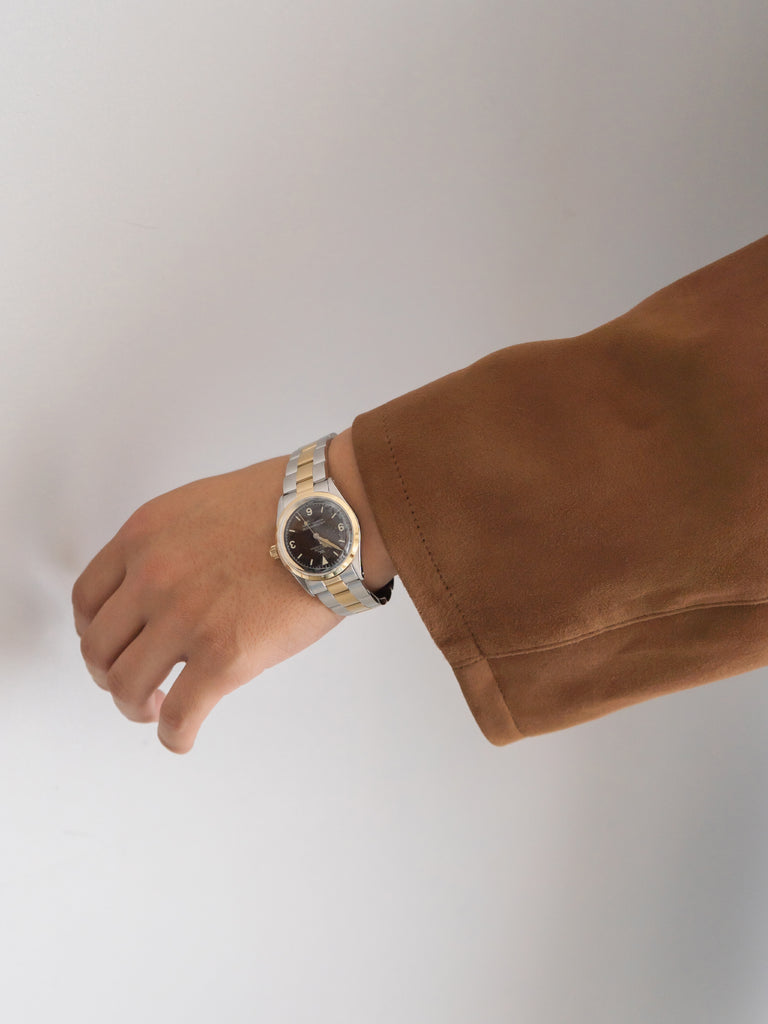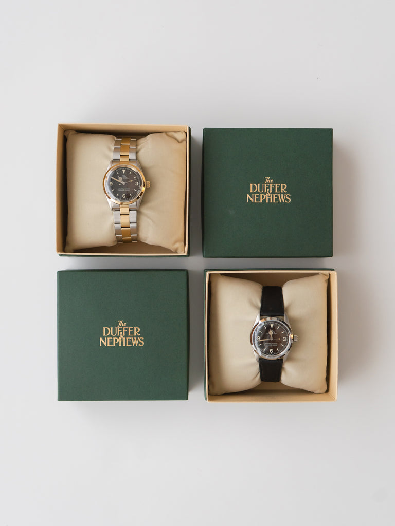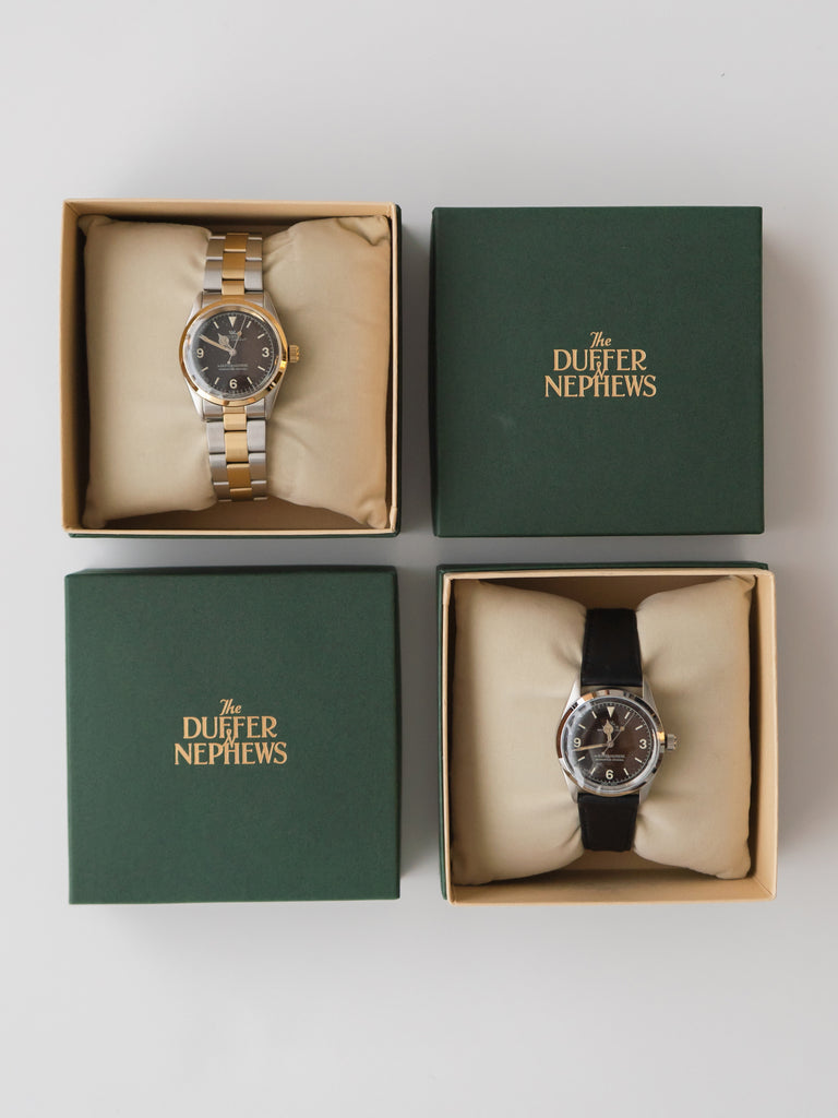 1950年代に某有名時計メーカーが探検家のために開発したモデルのボーイズサイズをベースに、オイスターバンドとGUIDIレザーの2パターンのベルトで展開。