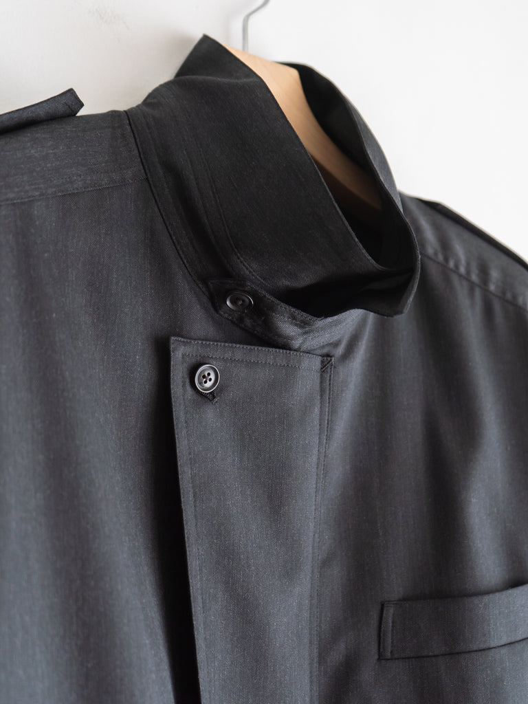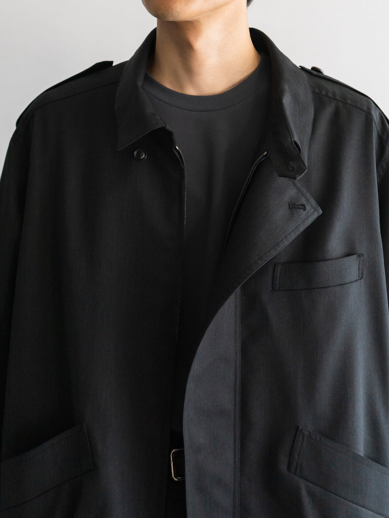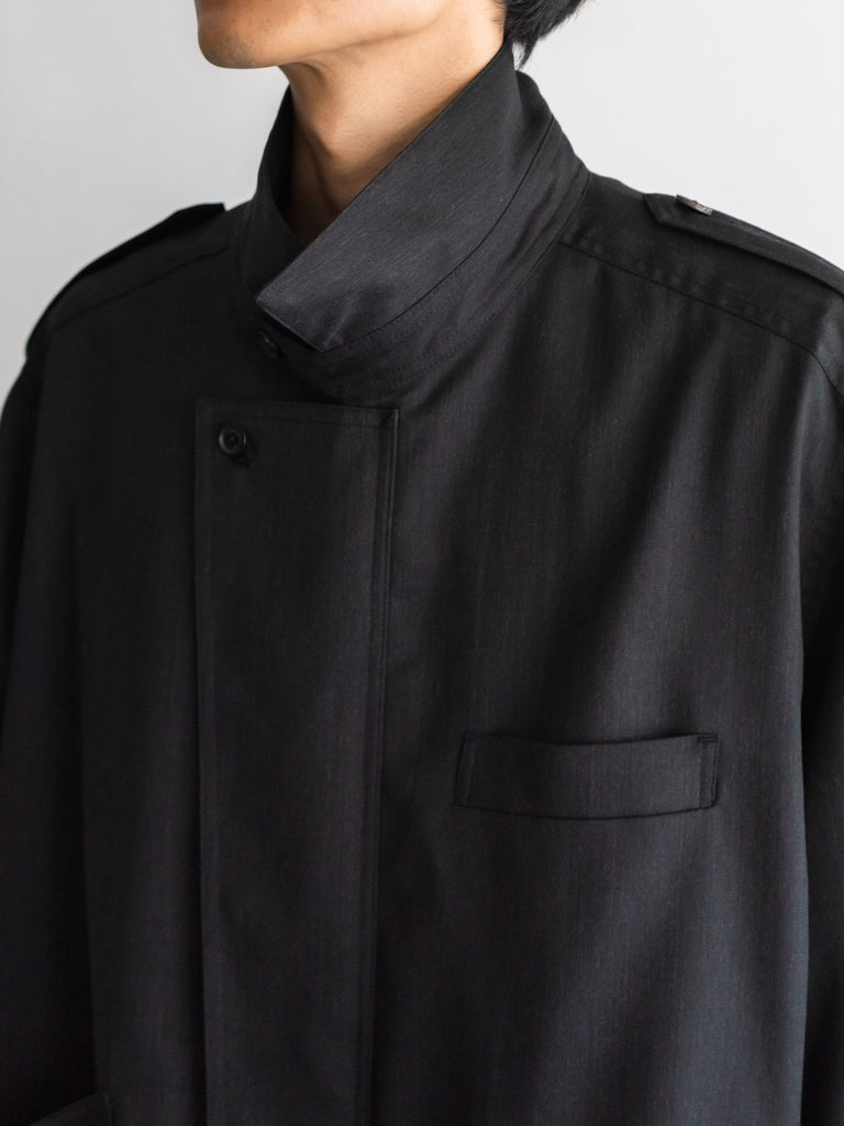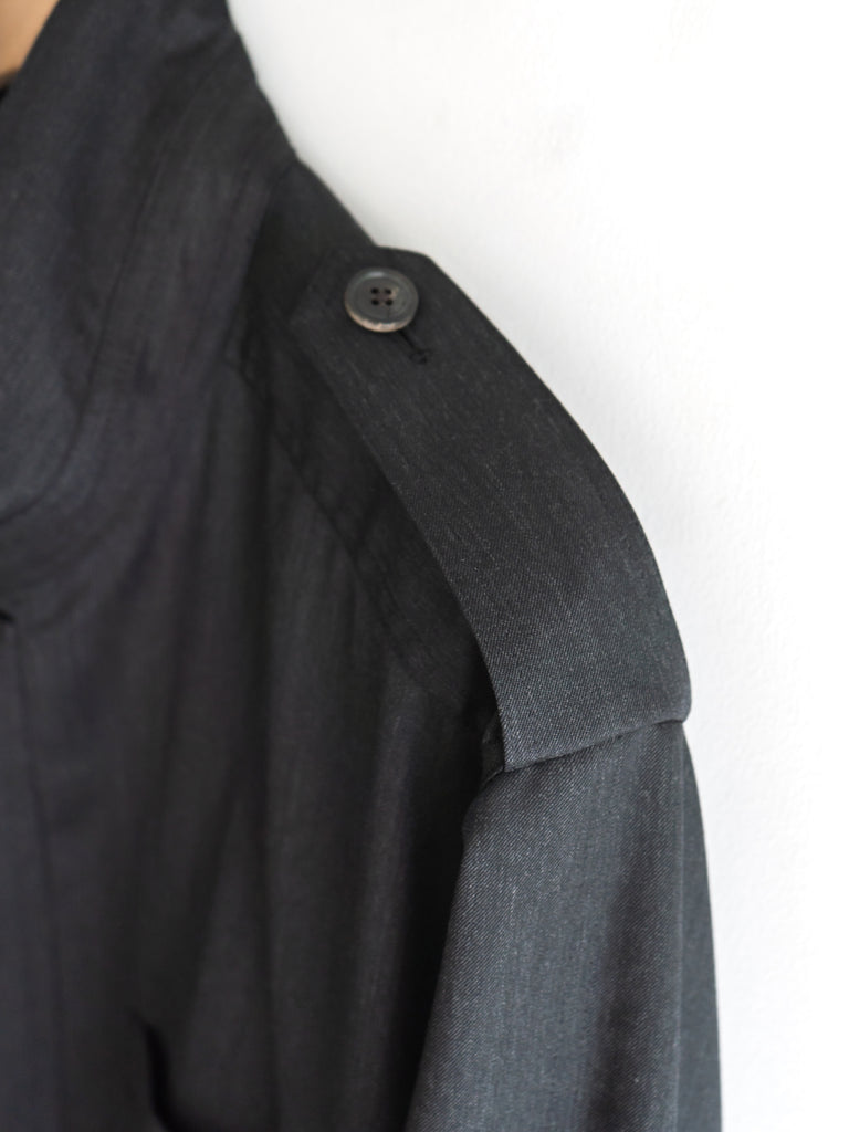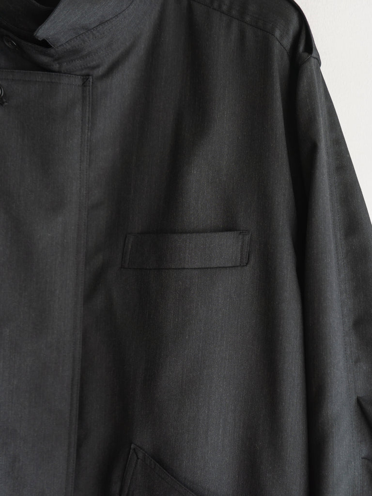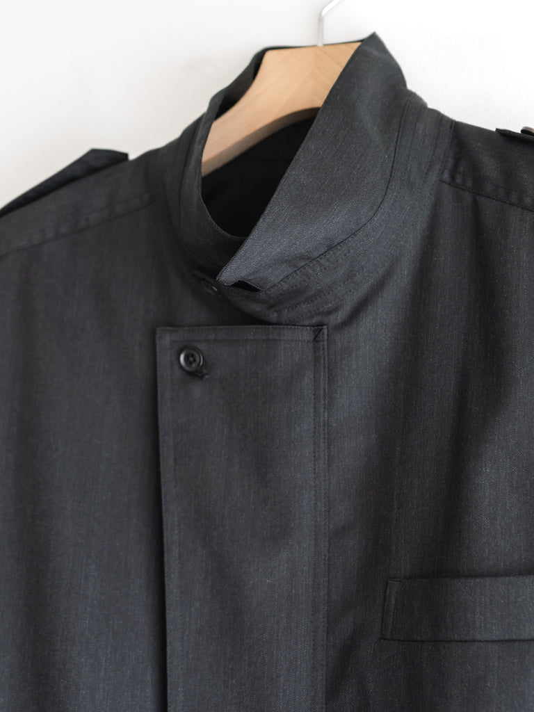 後裾はゴム仕様で、全体的にリラックスしたバランスで設計されており、肩章や前立ての比翼布、ポケットのバランスなどのディテールを加えながら、上質なウール素材で洗練されたワークテイストに仕上げた一着になっています。