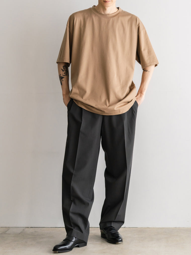 存在感のあるオーバーサイズが特徴のATON定番Tシャツ。